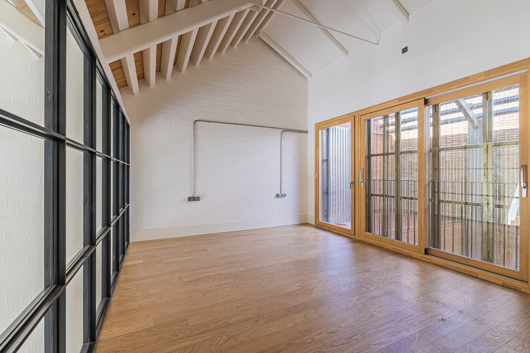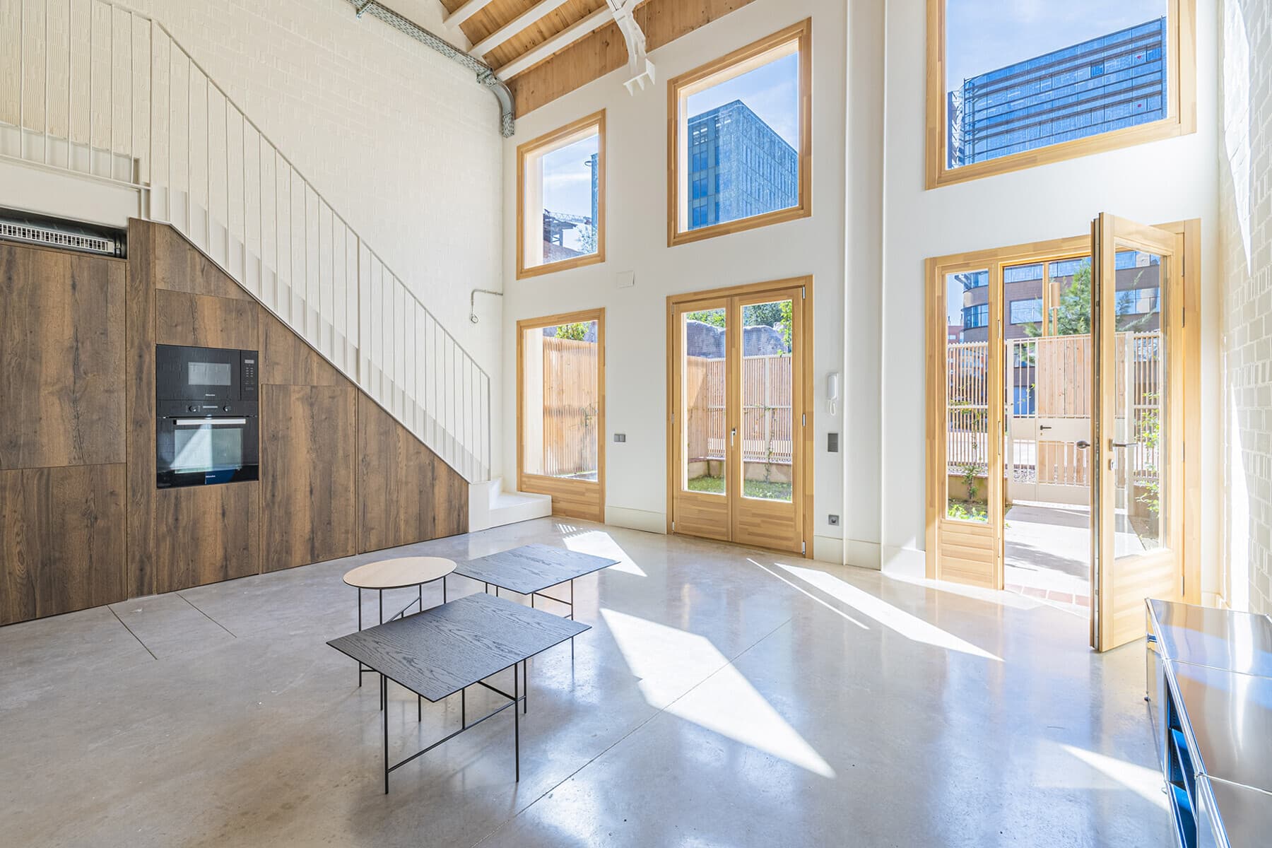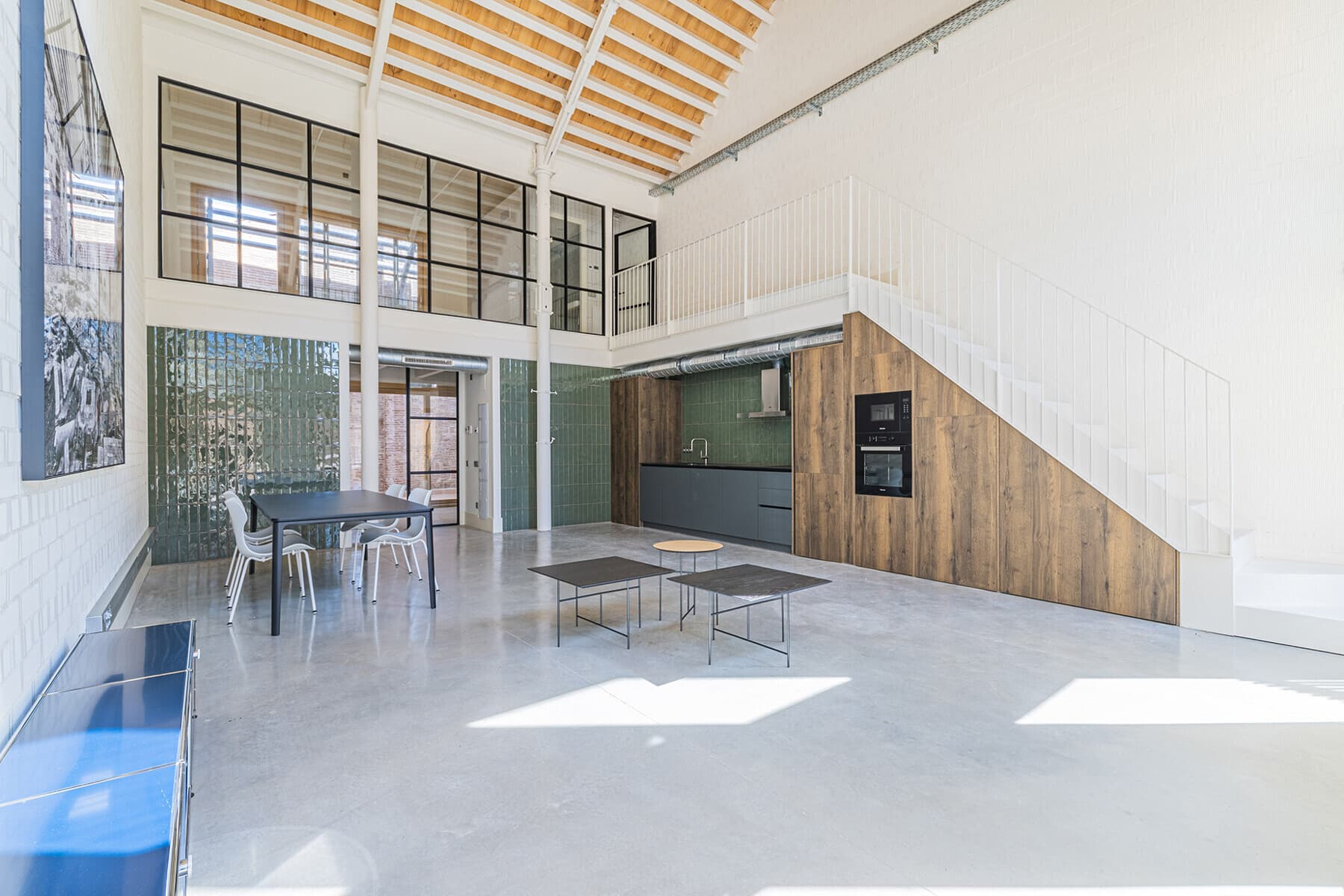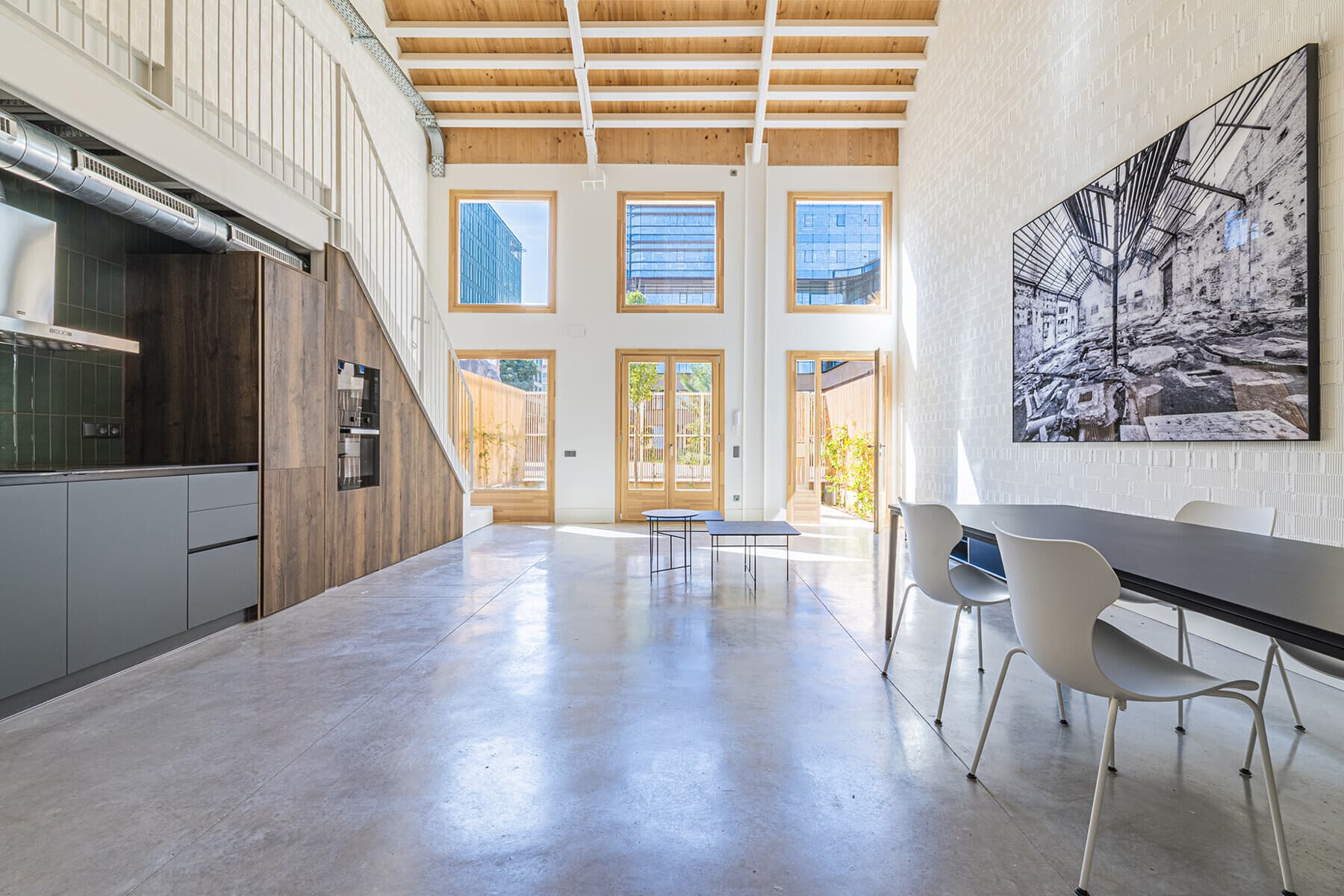 This double-height loft redefines industrial elegance through volume, light, and privacy.