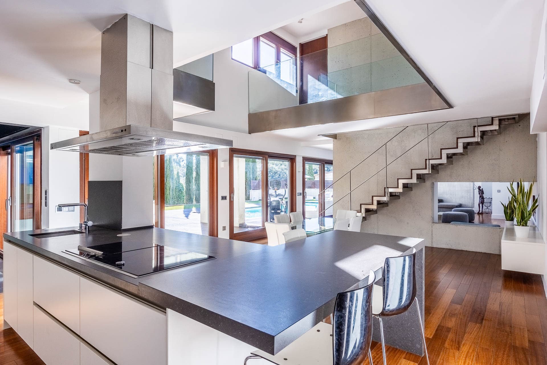 Exclusive designer villa, built with high-quality materials and luxury finishes in the Las Pajanosas Golf-Guillena Urbanization (Seville). This property, with 813 m² (according to the cadastre) distributed over three floors, has been designed by a prominent architecture and engineering studio.