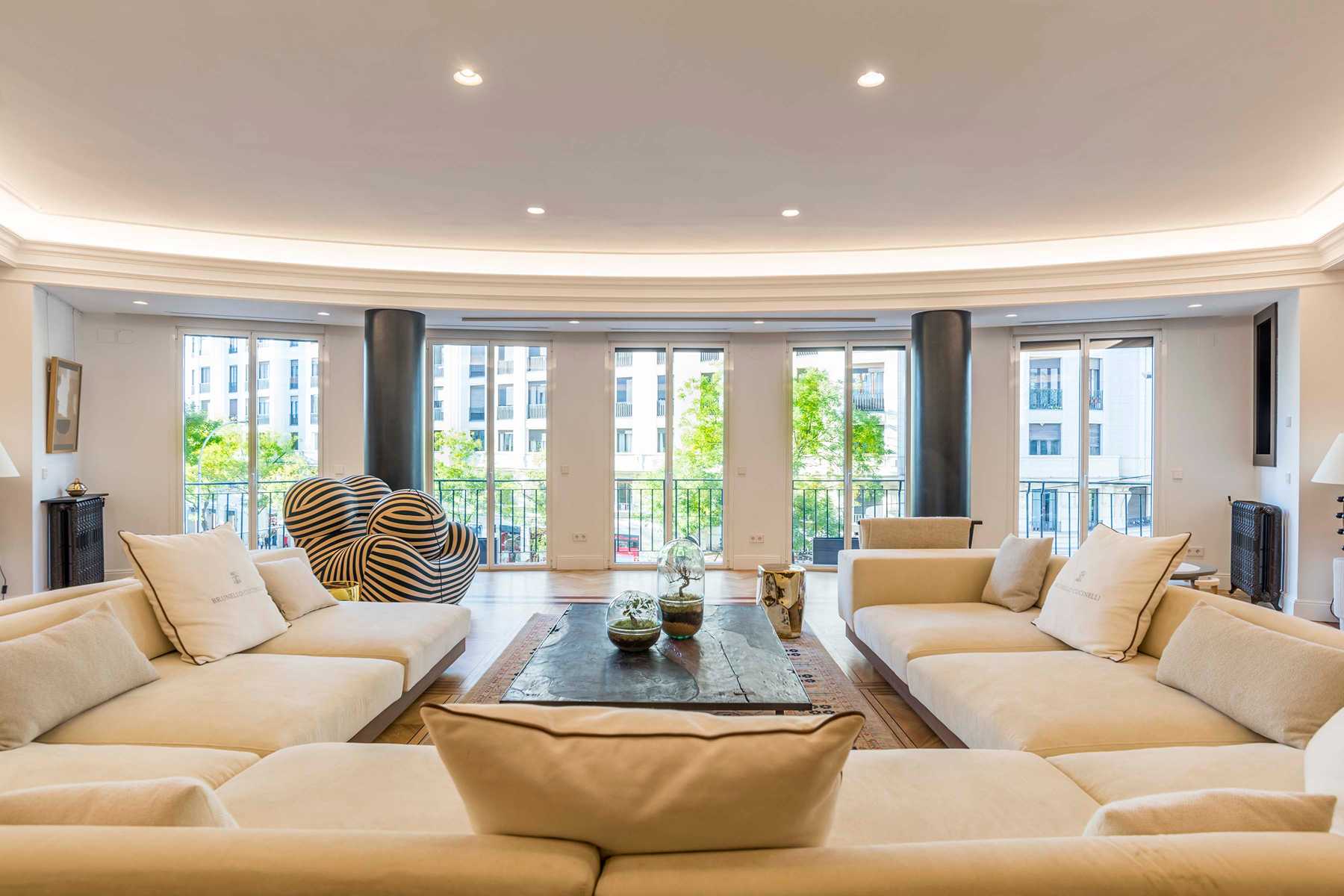 In the heart of the Salamanca neighborhood, just a step away from El Corte Inglés de Goya and a 10-minute walk from Retiro Park and Serrano Street, is this spectacular residence, occupying an entire floor of the building, with 427 m2 built and 11 balconies facing the street, providing extraordinary brightness throughout the space.