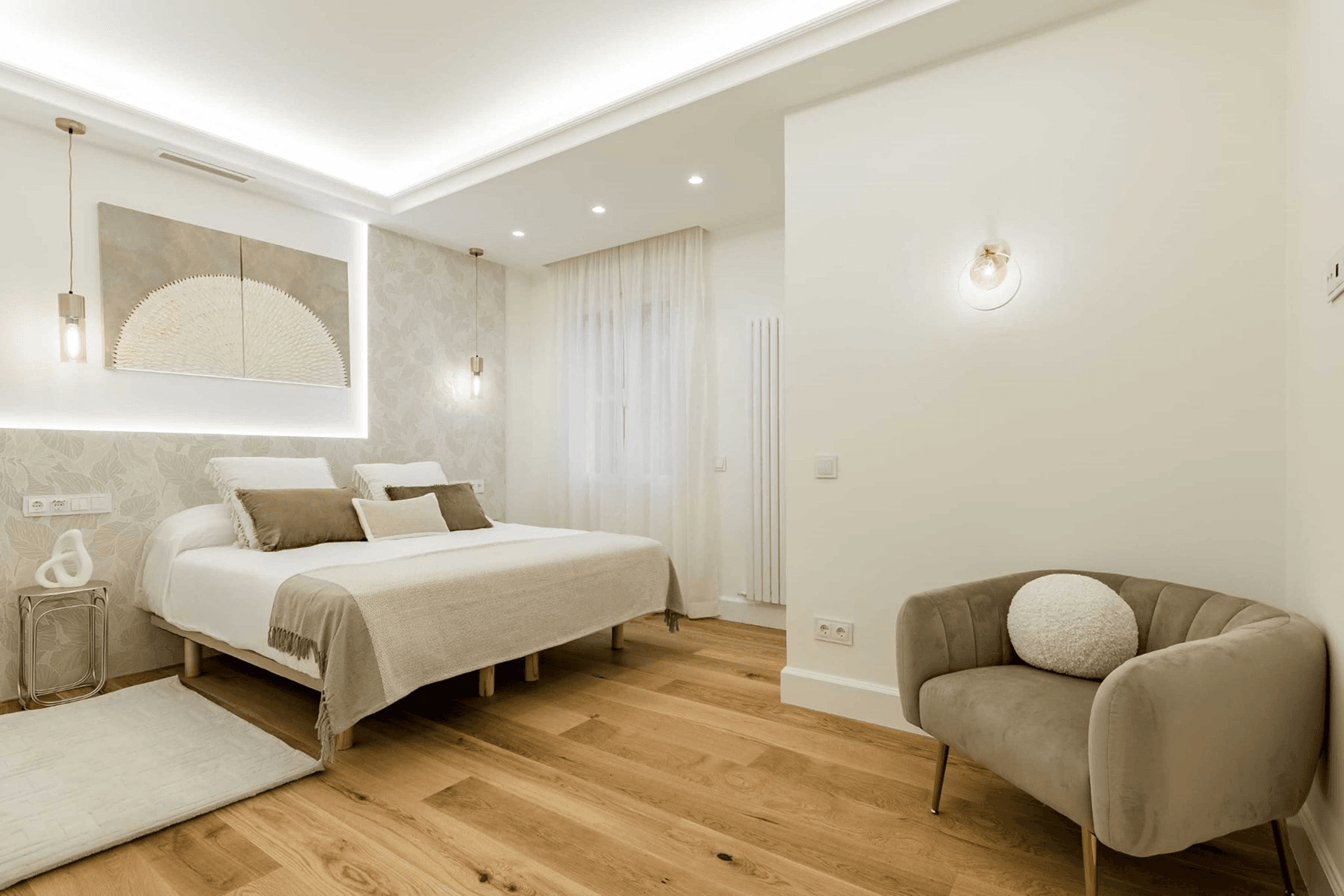 This elegant renovated home, with a surface area of 159 m² and located in the heart of Madrid, has been designed for those who aspire to combine comfort and style in a privileged urban environment. Its north and east orientation allows for balanced light throughout the day, while its modern architecture provides spaciousness and a contemporary aesthetic.