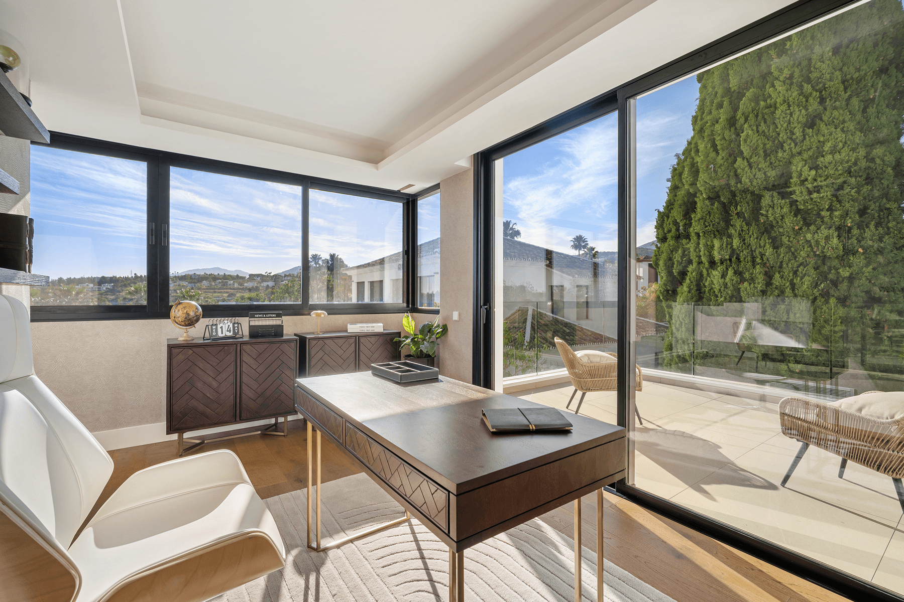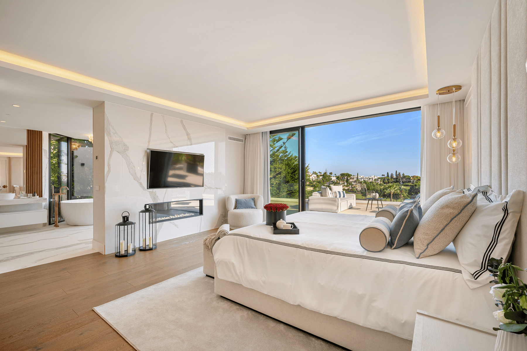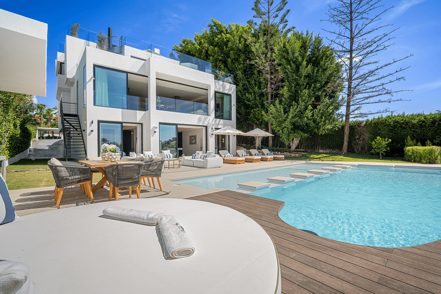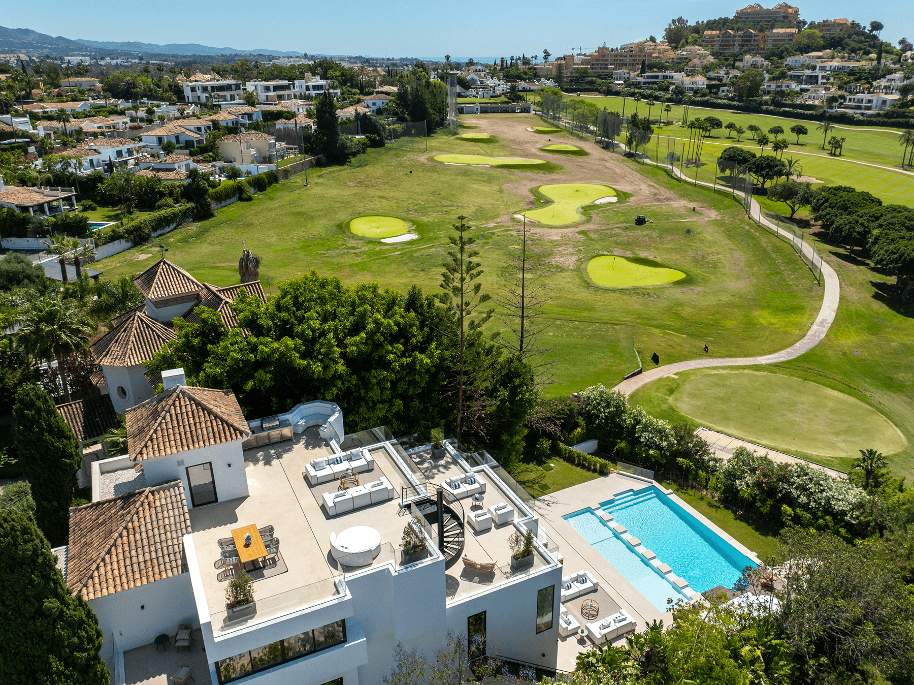 This residence represents a superior investment in sophisticated, contemporary living, defined by its unparalleled architecture and unrivaled construction quality. The villa is positioned on a private, secure plot, boasting breathtaking, front-line panoramic views over Los Naranjos Golf course.