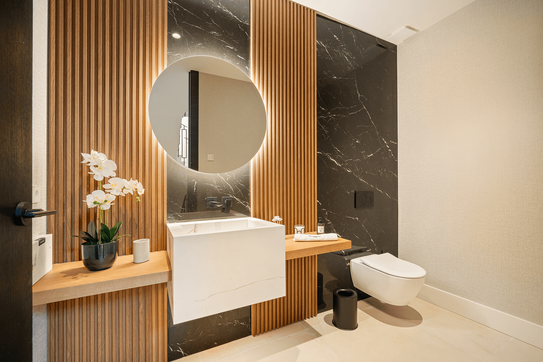 This unique five-story property showcases state-of-the-art features throughout. The expansive main living area flows into a custom-designed gourmet kitchen, centered around a large natural stone island and an exclusive wine cabinet, perfect for entertaining. Wide windows connect the interior seamlessly with the terraces and the spectacular infinity pool, framed by mature, tropical gardens. Read more