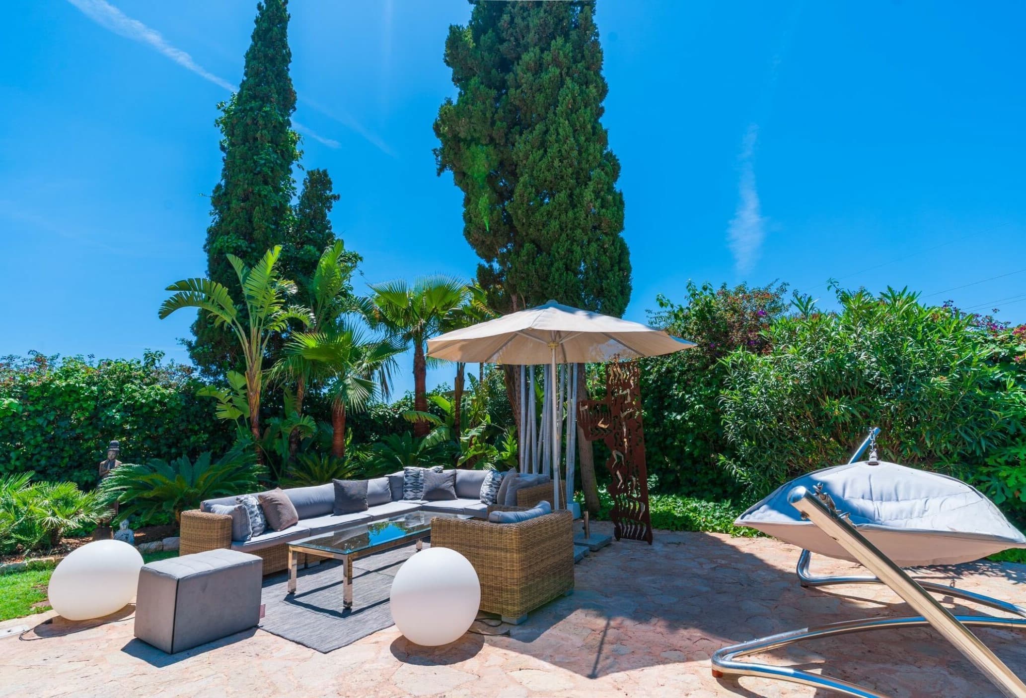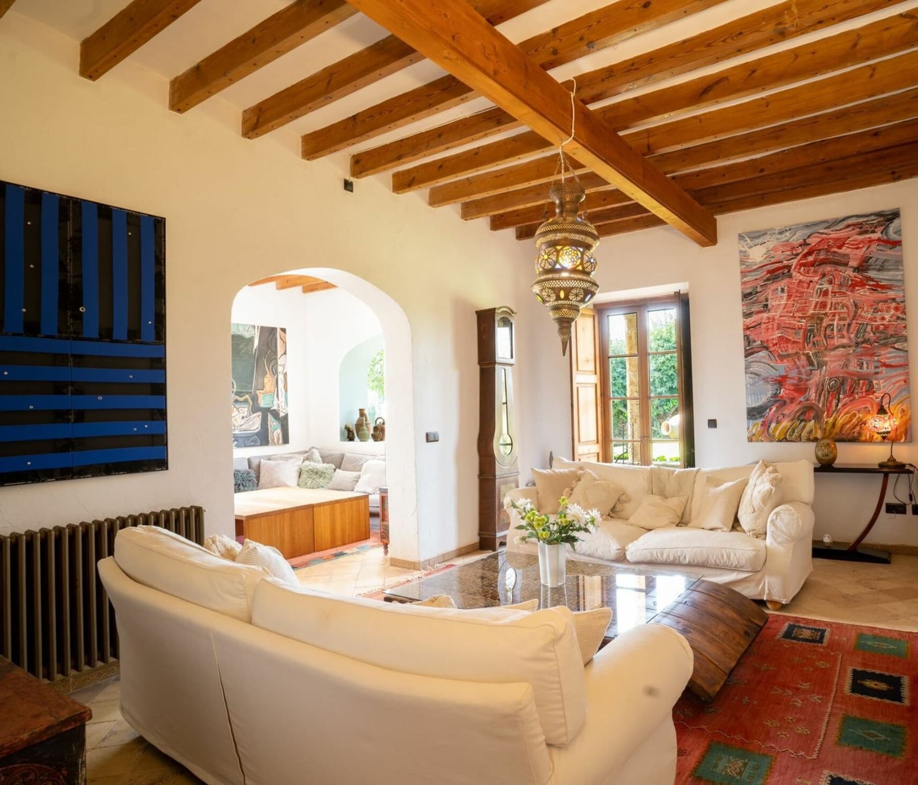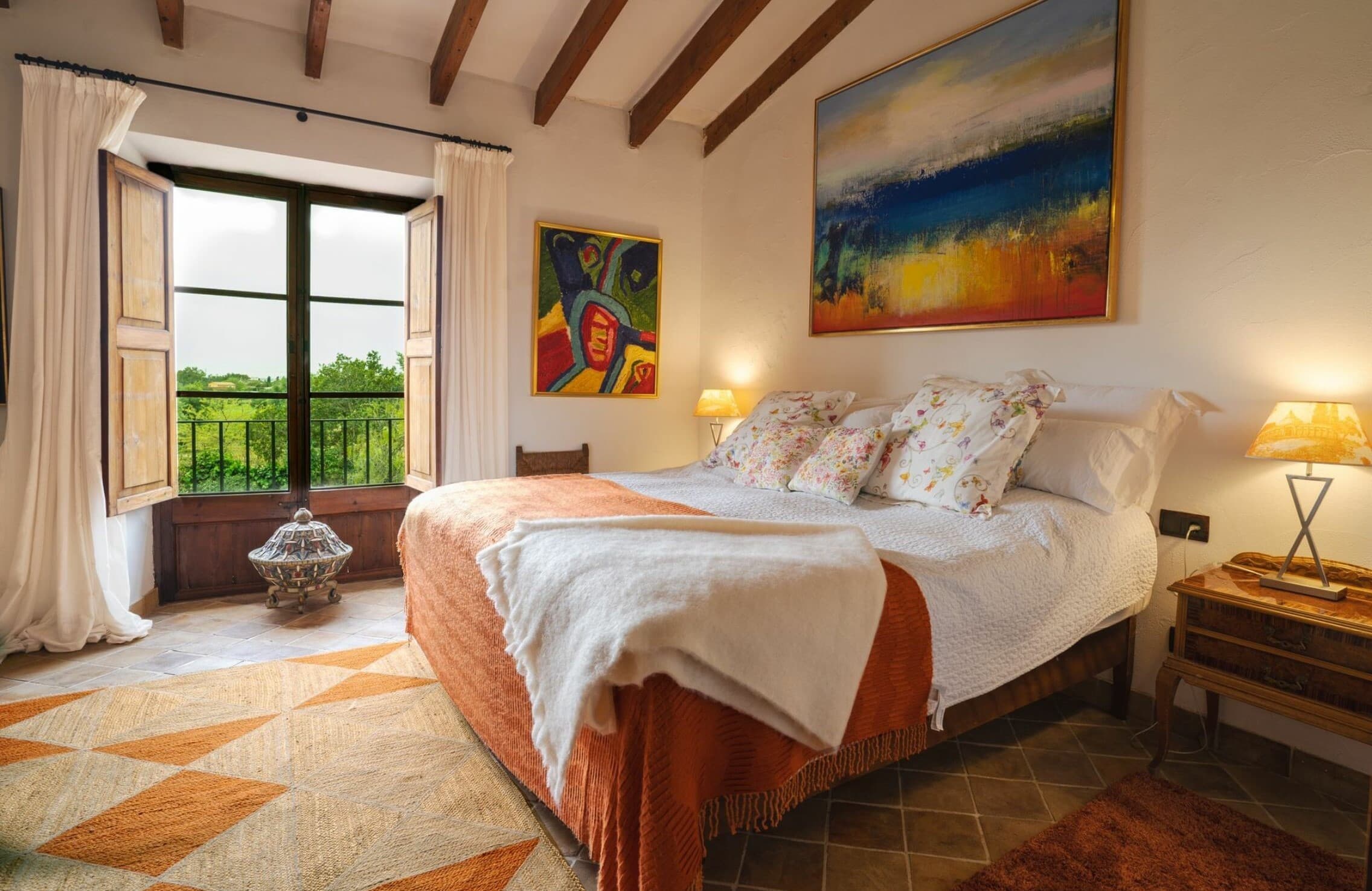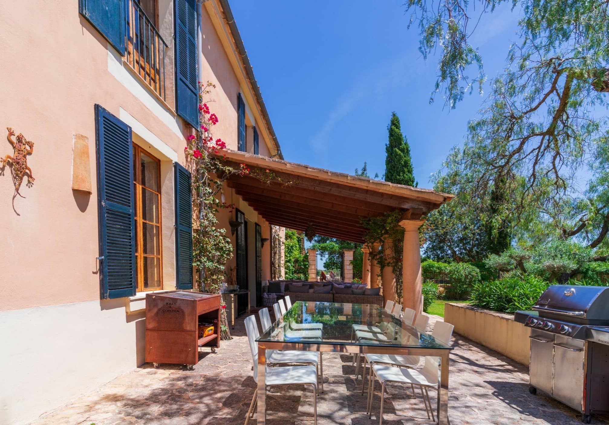 This distinguished rural estate is located in the serene and bucolic agricultural area of Marratxí, just a few kilometers north of Palma. The property is available for monthly rental. The rental price varies depending on the season, and the website lists it as “from €…”. A security deposit for possible damages is also required.