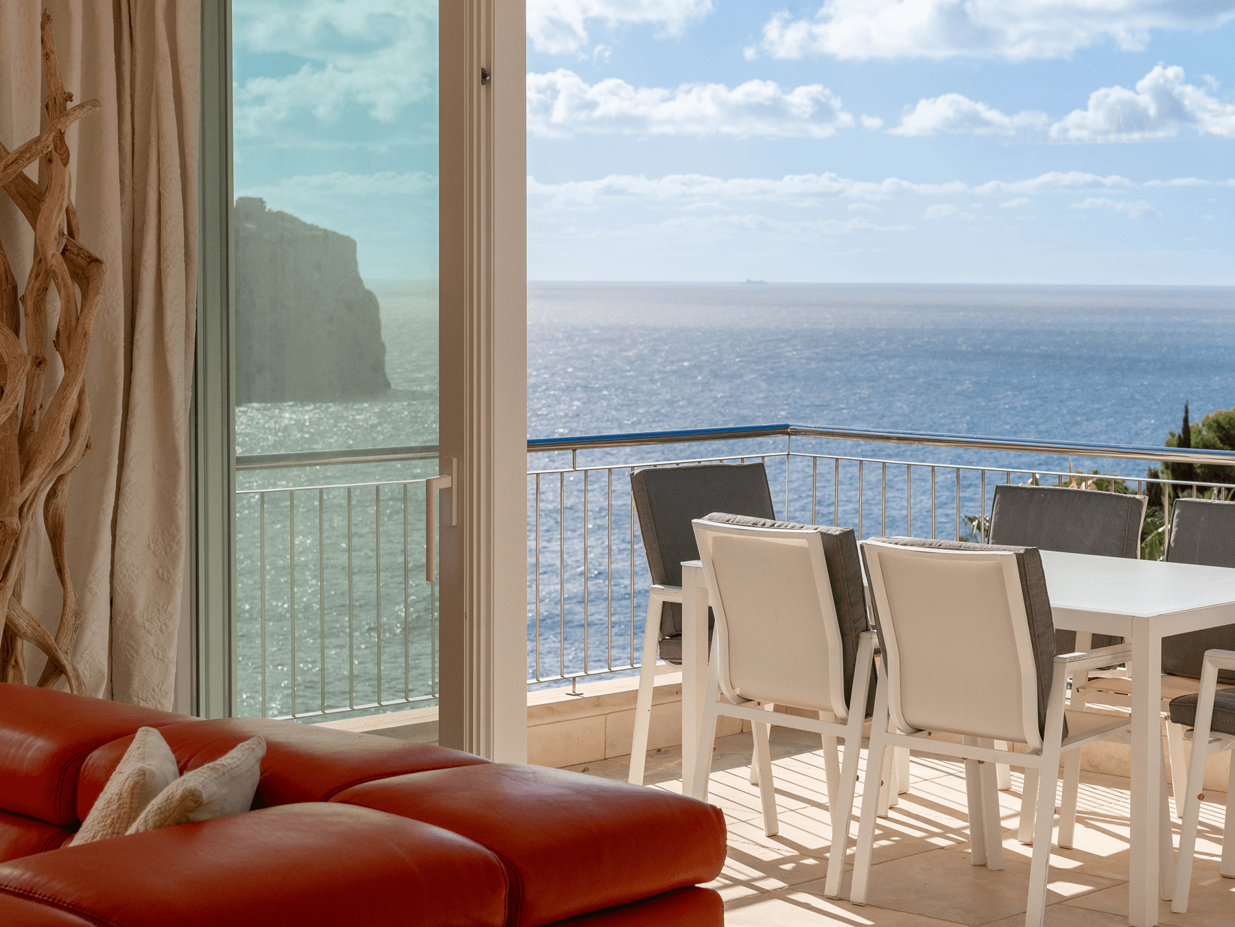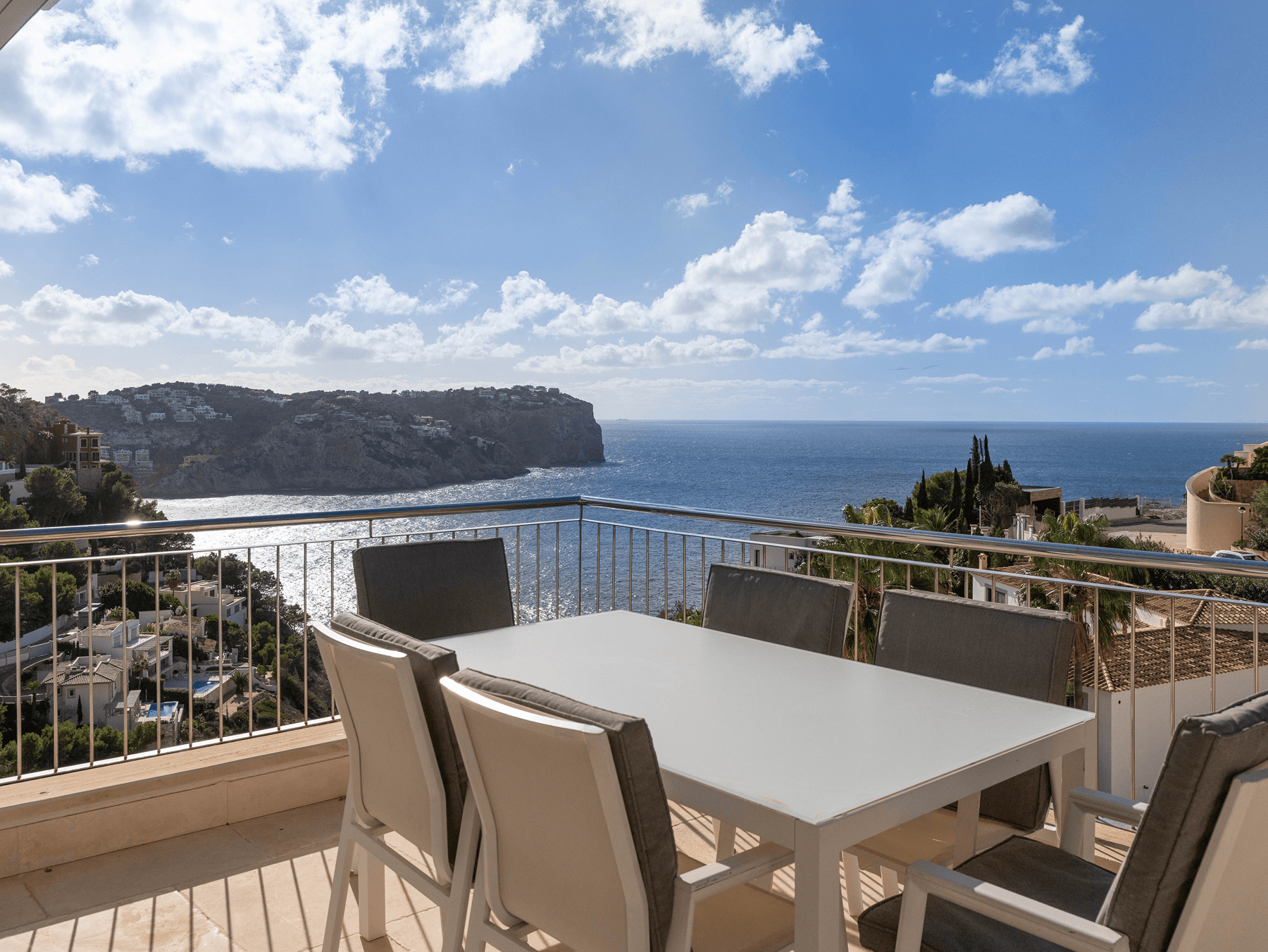 Exclusive 3‑bedroom penthouse in a luxury complex of only five units at Cala Moragues, Port Andratx, with panoramic views of the harbour entrance, sea and mountains. Approx. 175 m², light-filled living/dining area with open kitchen opening onto a large wraparound terrace with landscaped garden, pergola, heated private pool (air‑heat pump) and outdoor shower. Each room benefits from external facing windows, ensuring abundant natural light and a welcoming ambiance. Read more