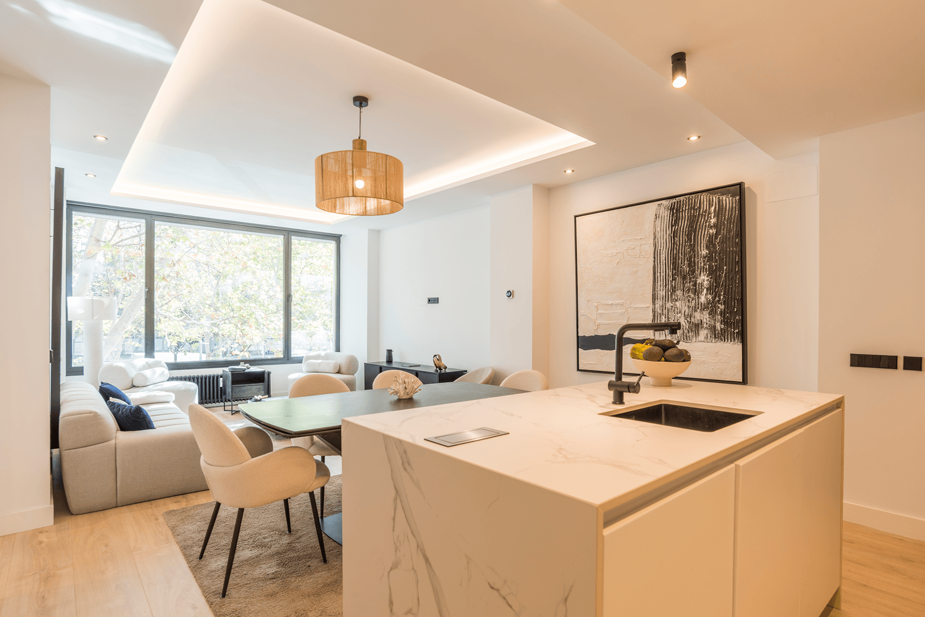 The apartment has three well-distributed bedrooms and two full bathrooms, with spaces that stand out for their brightness thanks to the large exterior windows. The renovation has been carried out with quality materials that guarantee resistance and a contemporary finish. The kitchen, equipped with modern appliances, naturally integrates into the main living room, creating an open and practical environment. From here, there is access to a terrace that provides a cozy space to enjoy outdoor living all year round. Read more
