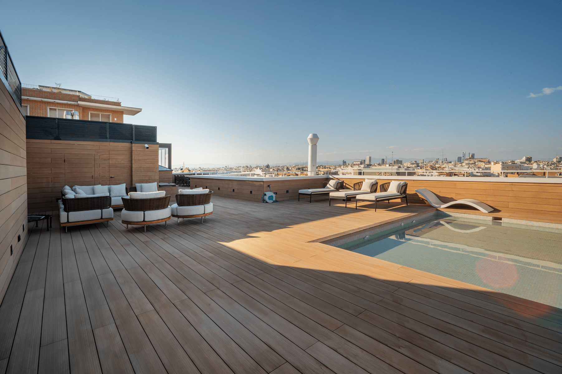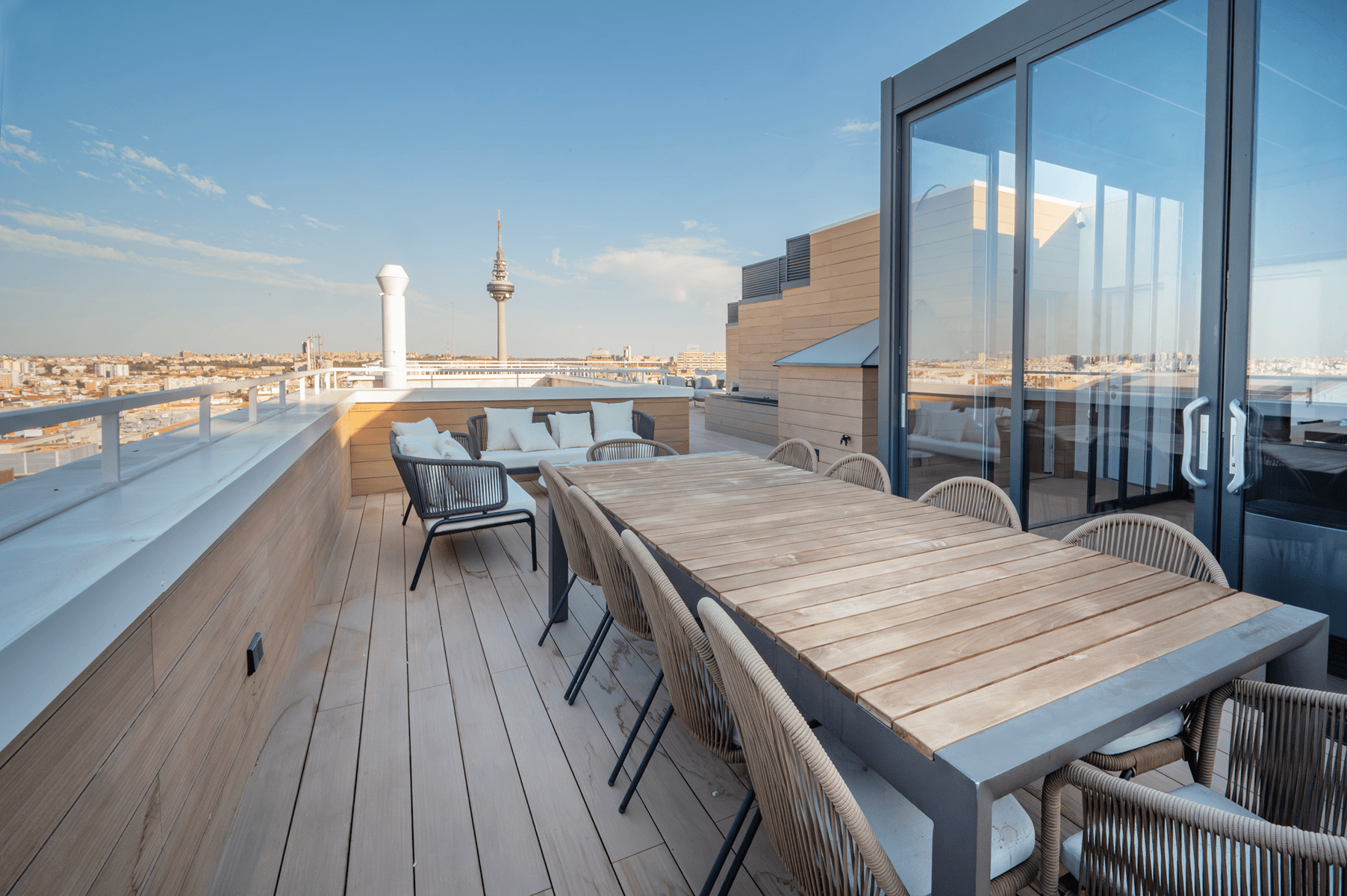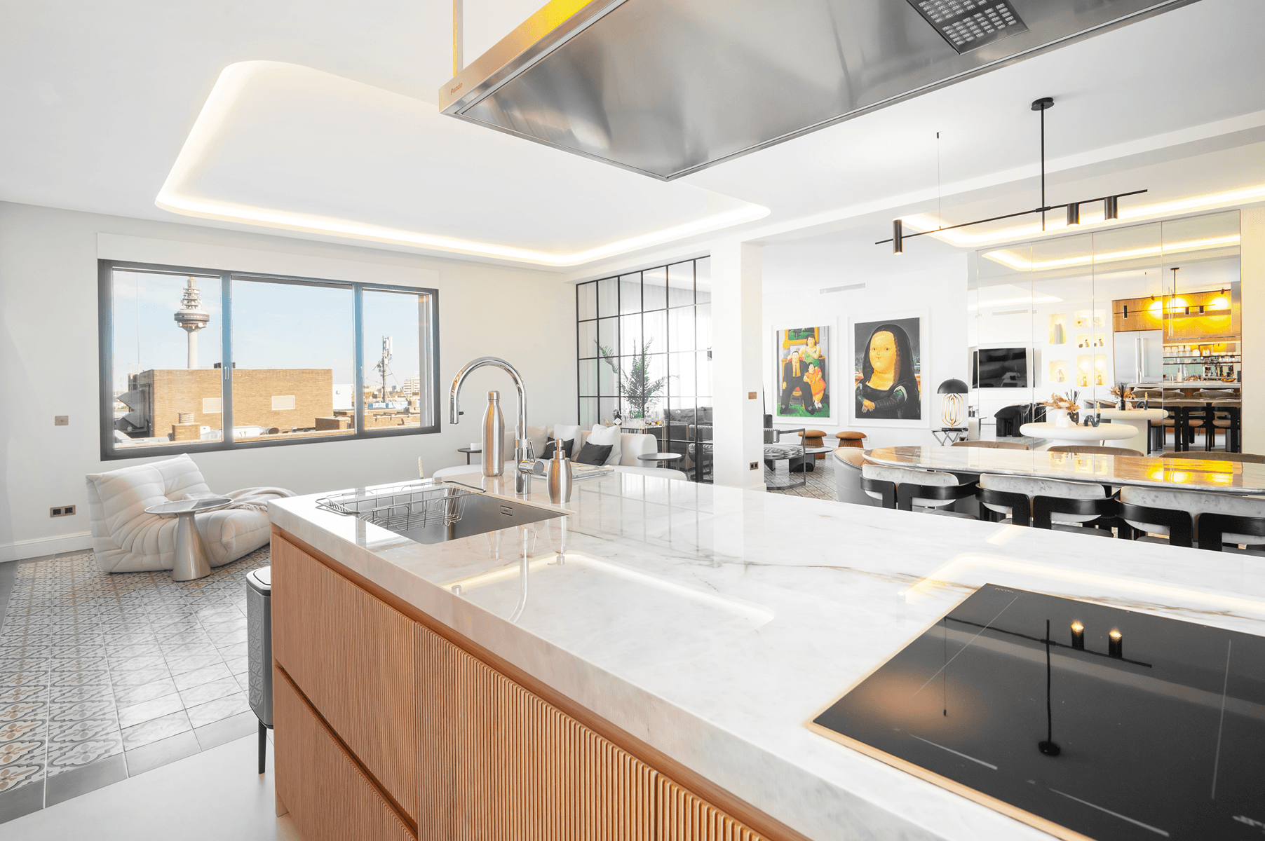 This 290 m² residential penthouse, completely renovated and originally built in 1955, stands in the heart of Madrid. A space where spaciousness, light, and contemporary design come together to offer an exceptional lifestyle in one of the city's most privileged settings.