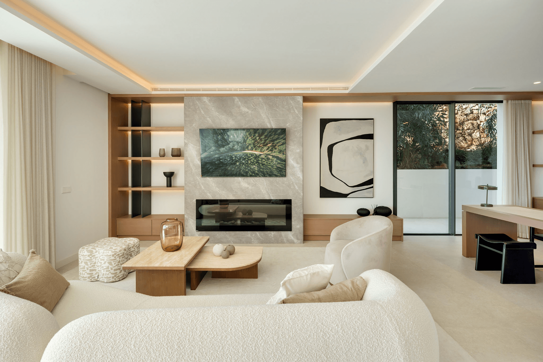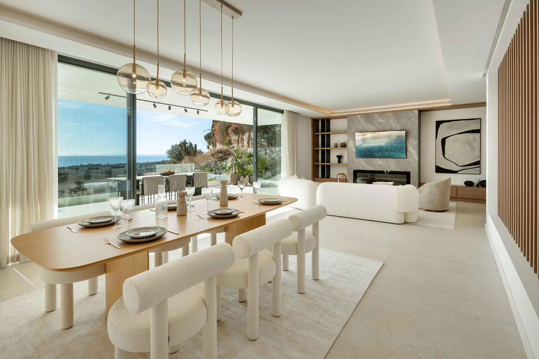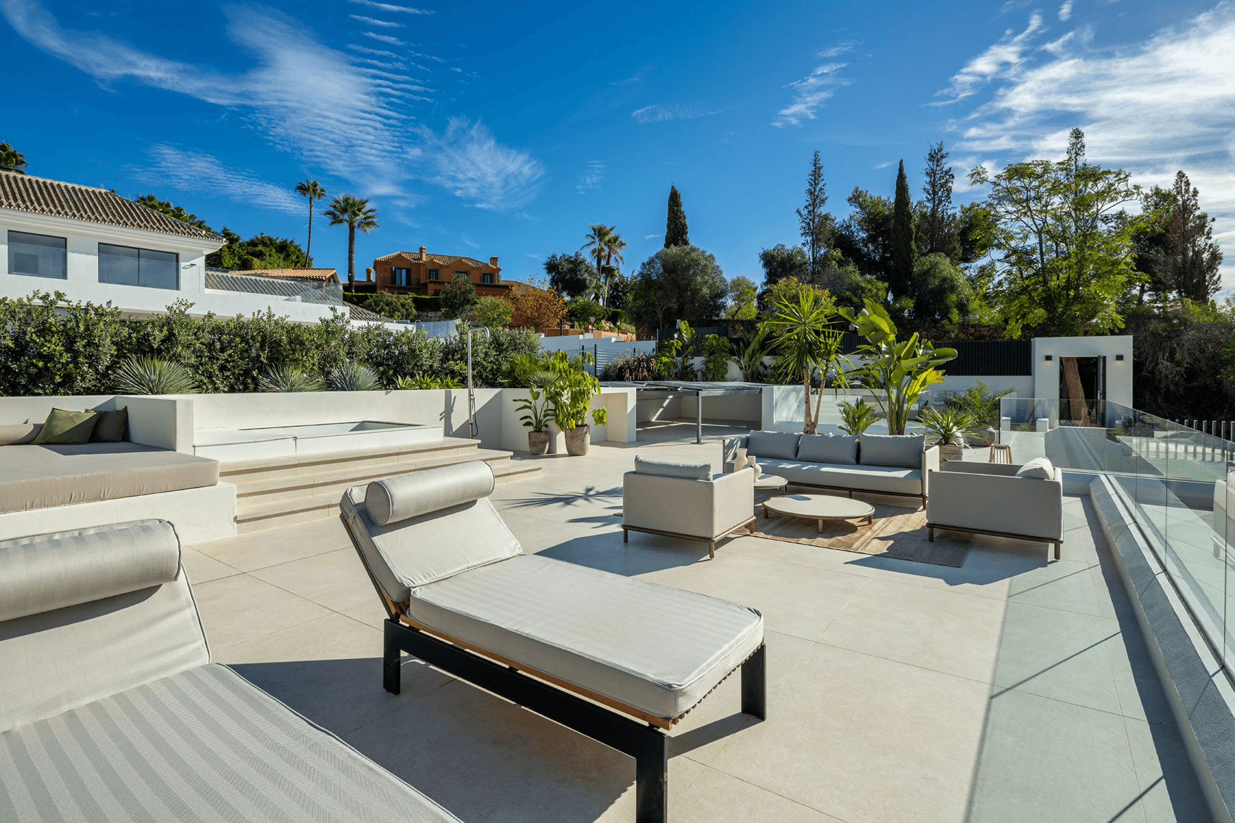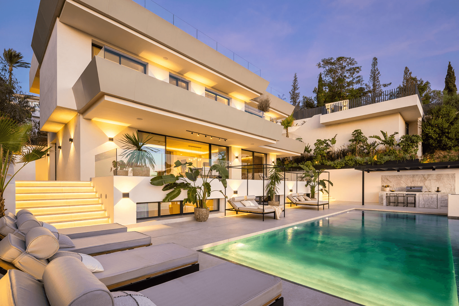 Spanning three carefully planned floors, the villa provides 454 square metres of beautifully designed interior space and an expansive 621 square metre terrace. The residence includes five generous en-suite bedrooms, ensuring comfort and privacy for residents and guests alike. The interior design conveys sophisticated style, accentuated by materials such as oak flooring and large-format porcelain tiles. Top-of-the-line appliances have been thoughtfully integrated throughout the kitchen, fortifying its commitment to functional excellence and quality. Read more