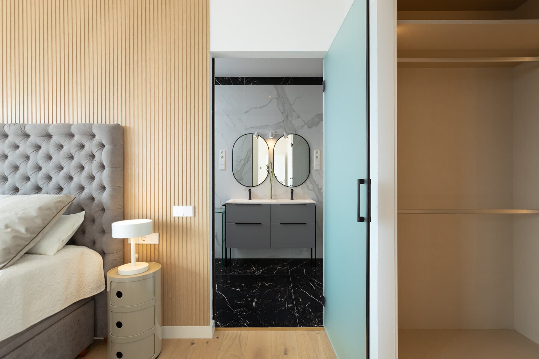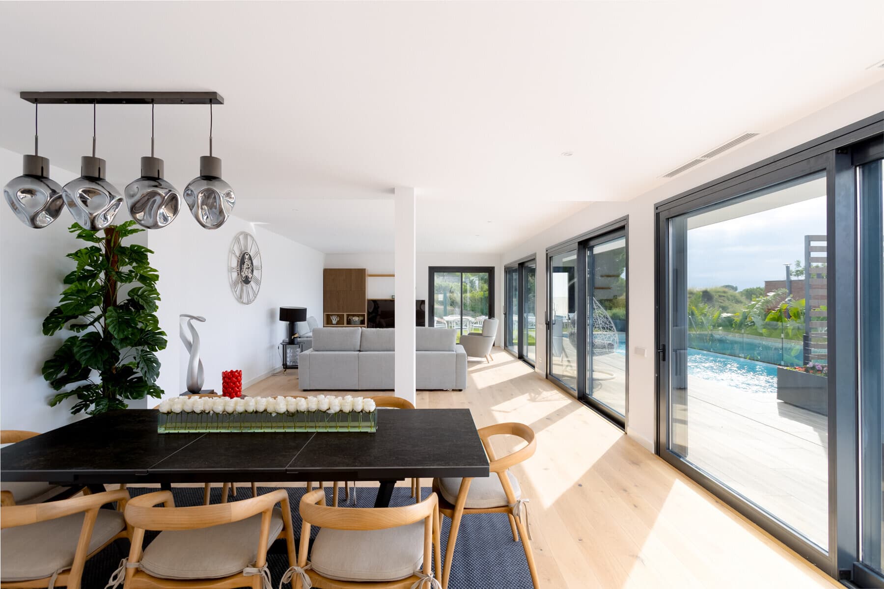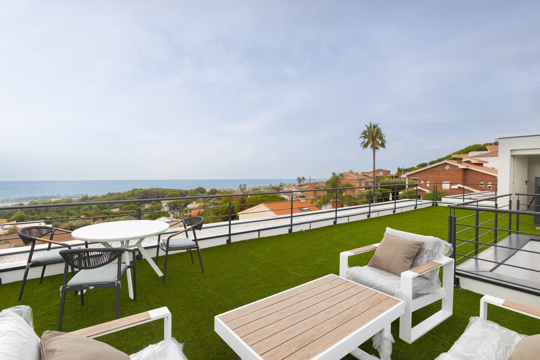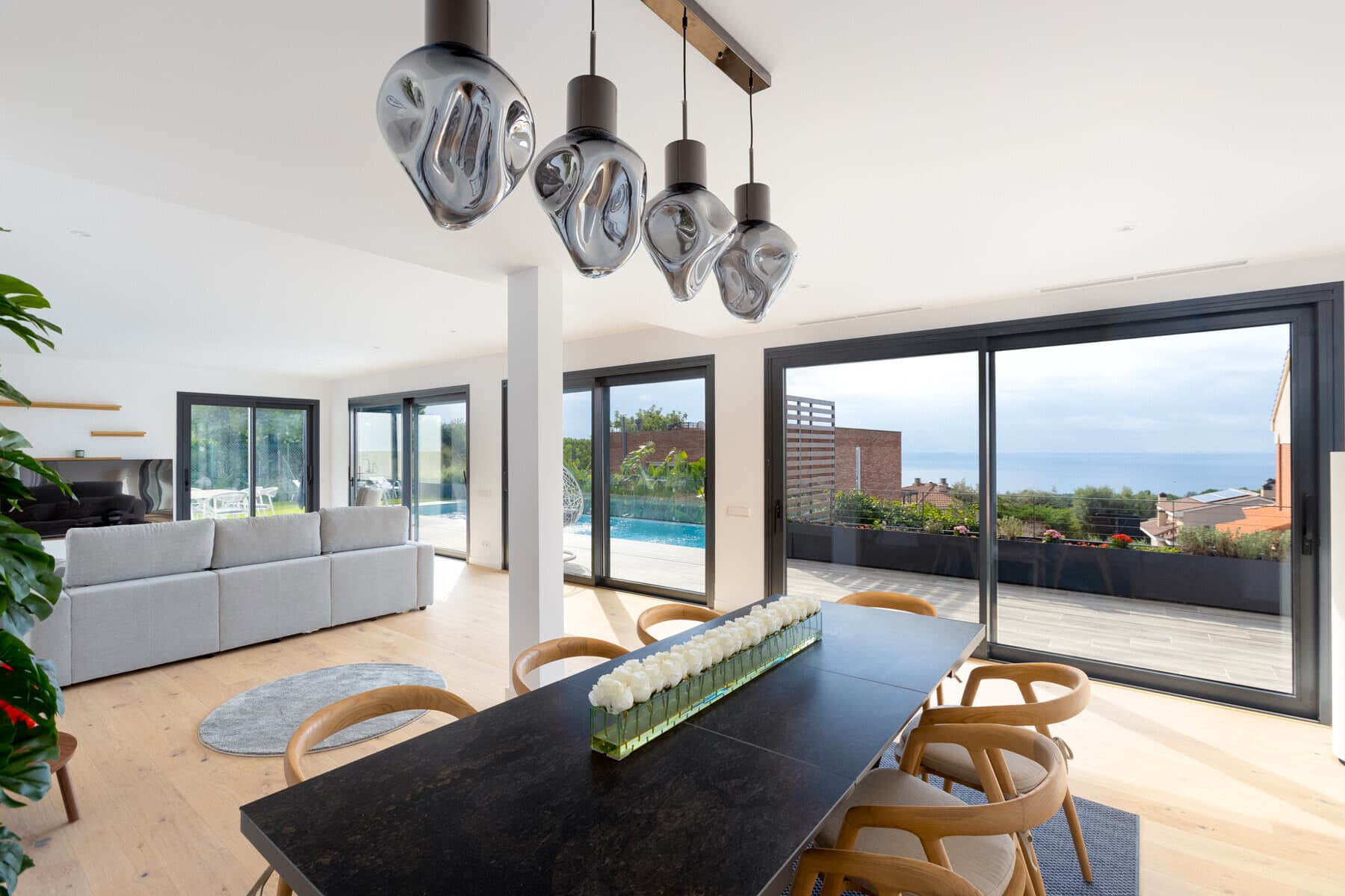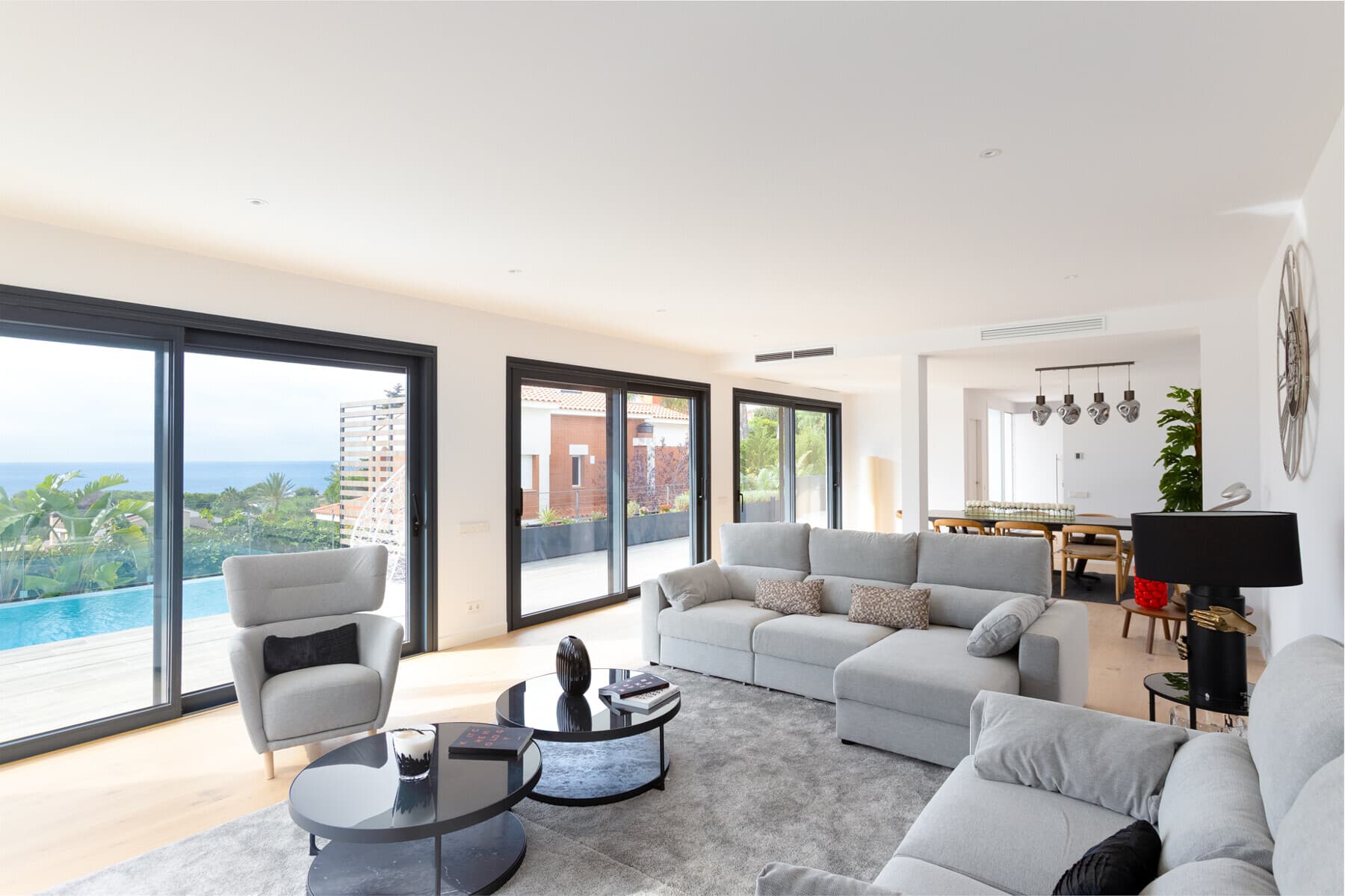 We present a dream residence that epitomizes contemporary elegance on the Mediterranean coast. This spectacular new home, in a modern Mediterranean style, is strategically located on the seafront, offering a unique experience with unparalleled views of the marina and the extensive beach that unfolds before your eyes.