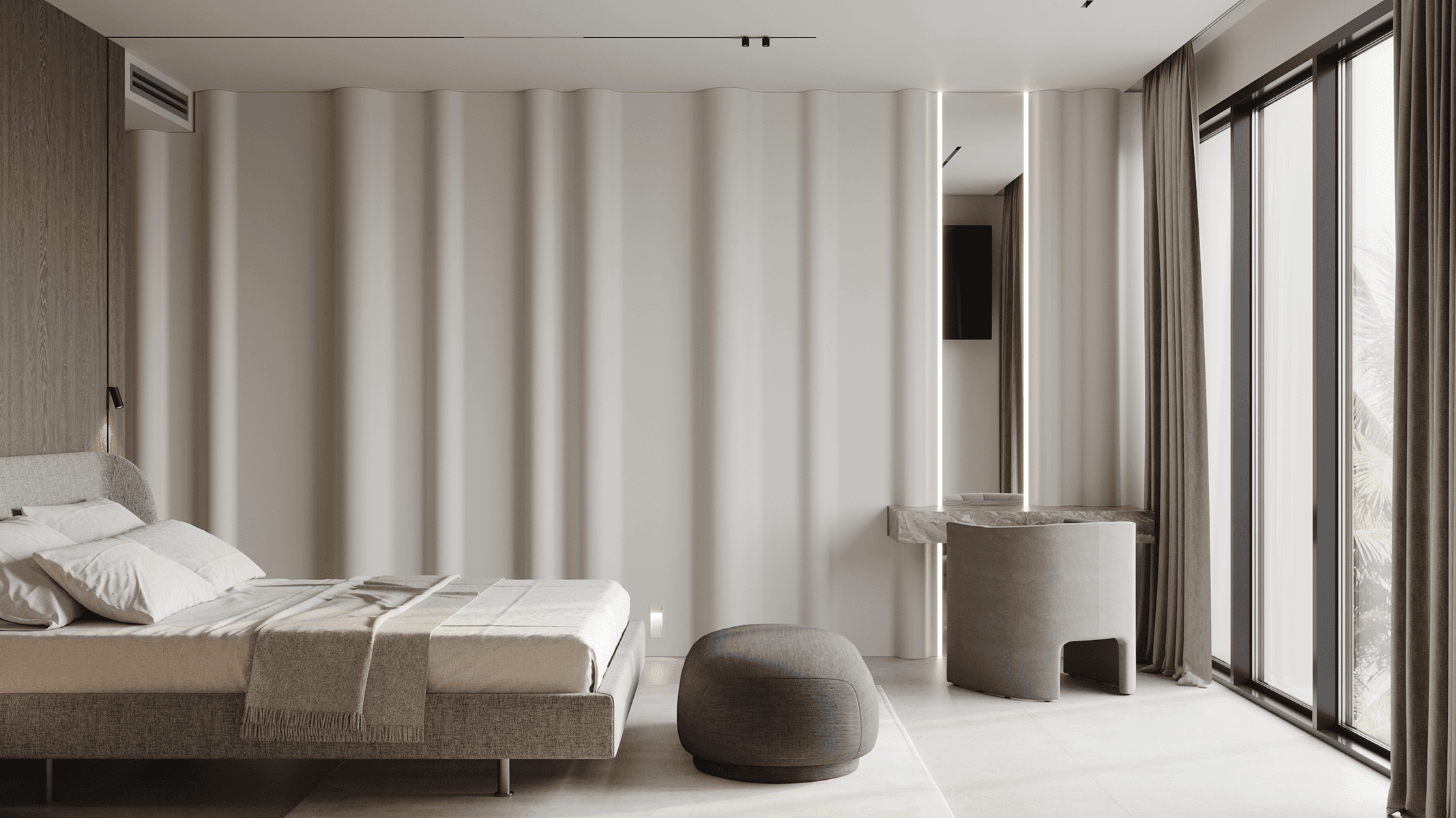 Located on a 1,152 m² plot, the house has 515 m² of interior space and 298 m² of terraces, naturally connecting indoor and outdoor spaces. Large windows, natural materials, and neutral tones provide brightness and a sense of spaciousness in every corner of the home. Read more