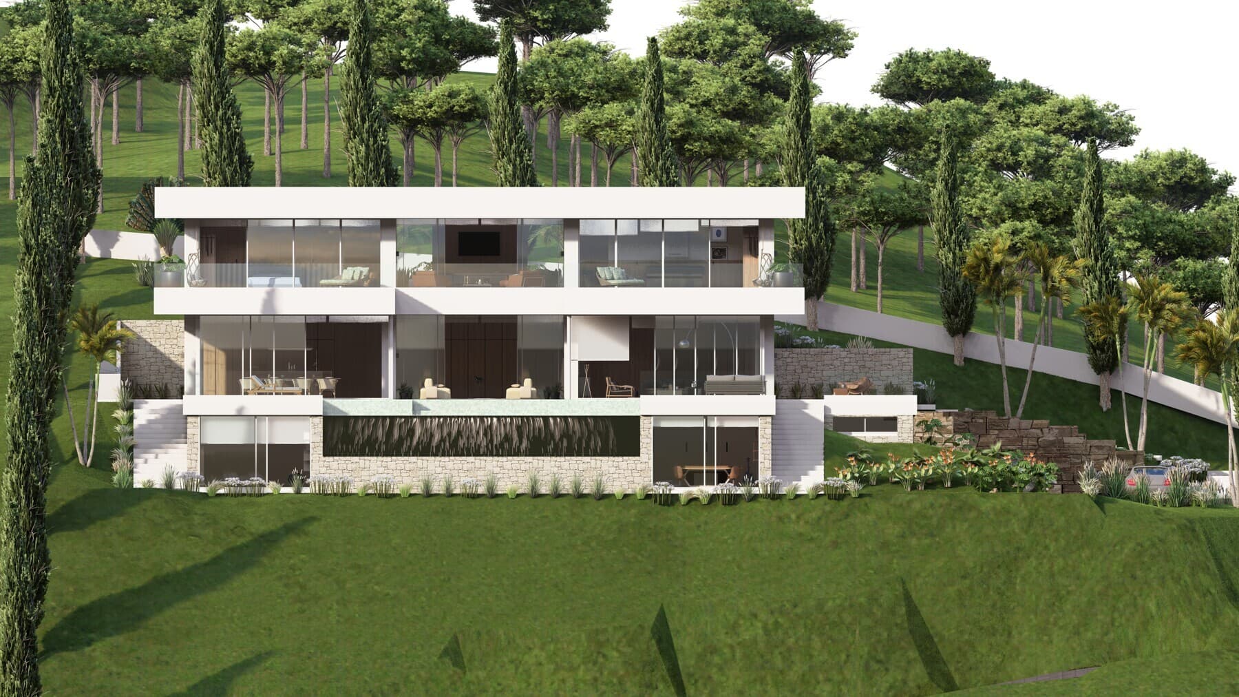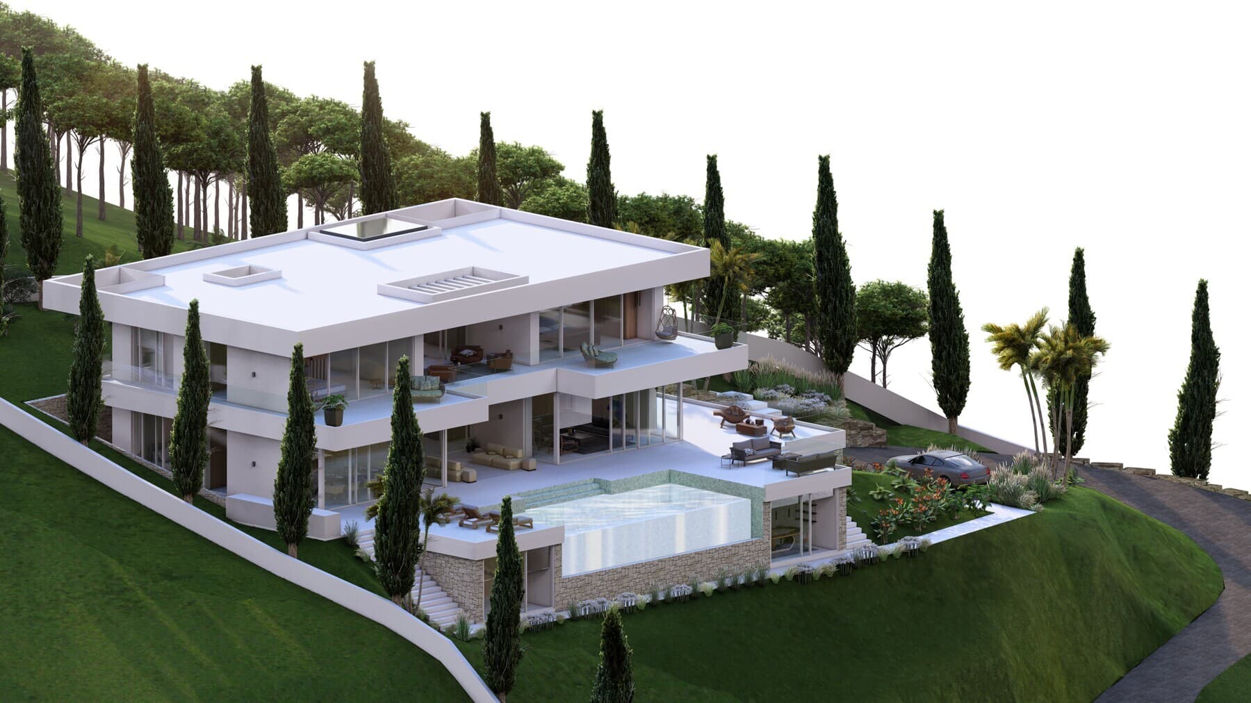 Project of what will undoubtedly be one of the best houses in El Mirador de Sant Andreu de Llavaneres. Located on a plot in the upper part of the urbanization. The 360º views are simply spectacular, the sea covers practically 180º of the vision, and the other 180º are green of a spectacular forest. This plot is also above the adjoining ones, so its privacy is total.