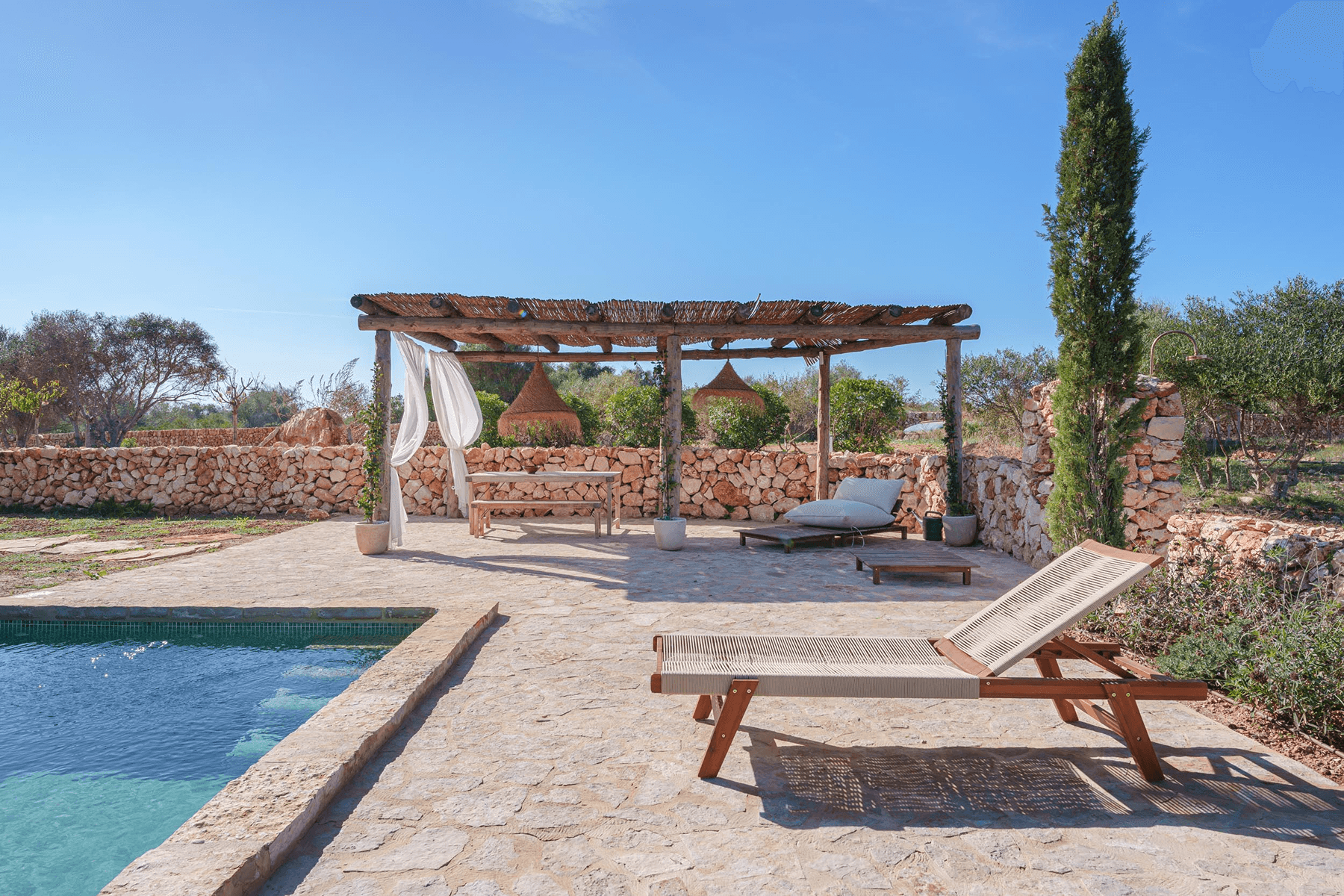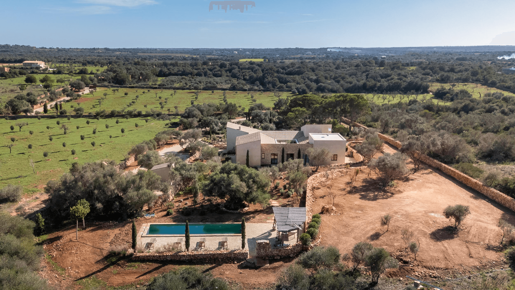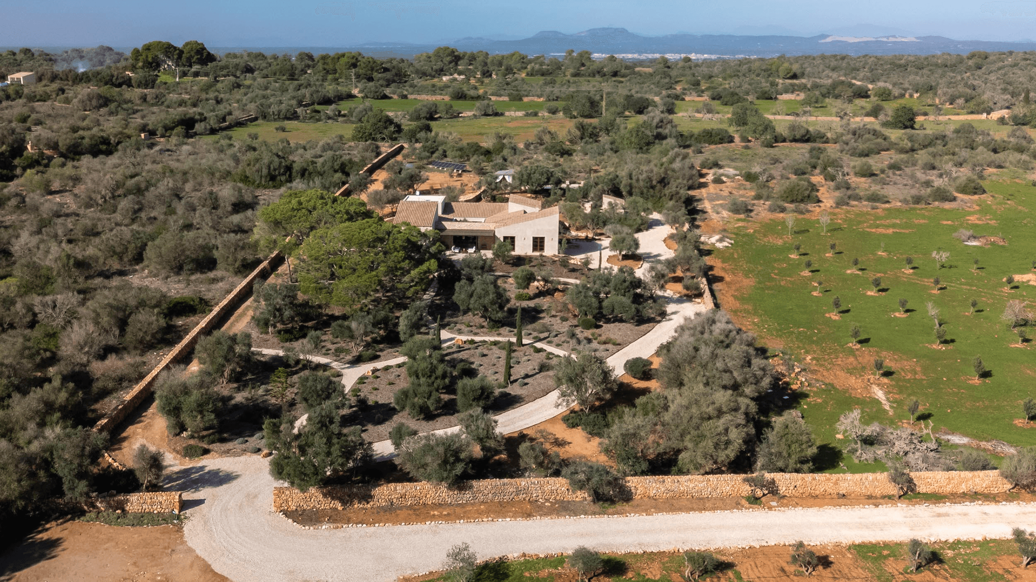 In a landscape of 23,000 m² of natural beauty, this newly built estate in Ses Salines embodies the essence of contemporary Mediterranean design: clean lines, noble materials, and a constant connection with nature.