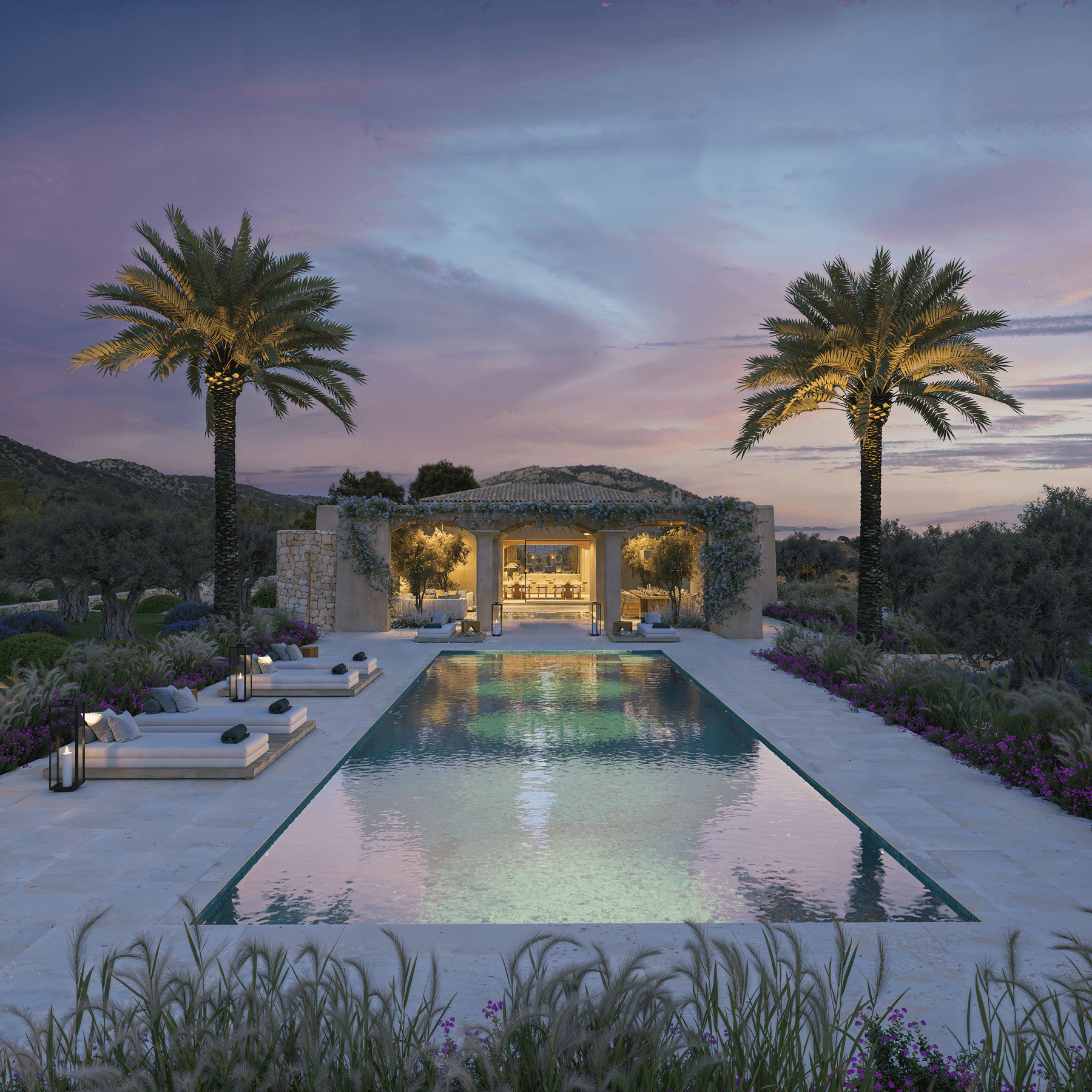 The villa comprises five spacious en-suite bedrooms, two dressing rooms, and two guest WCs. Elegant open-plan living areas feature a designer kitchen with central island, bespoke wine cellar, and high-quality finishes throughout. Central air conditioning and aerothermal heating ensure year-round comfort. Read more