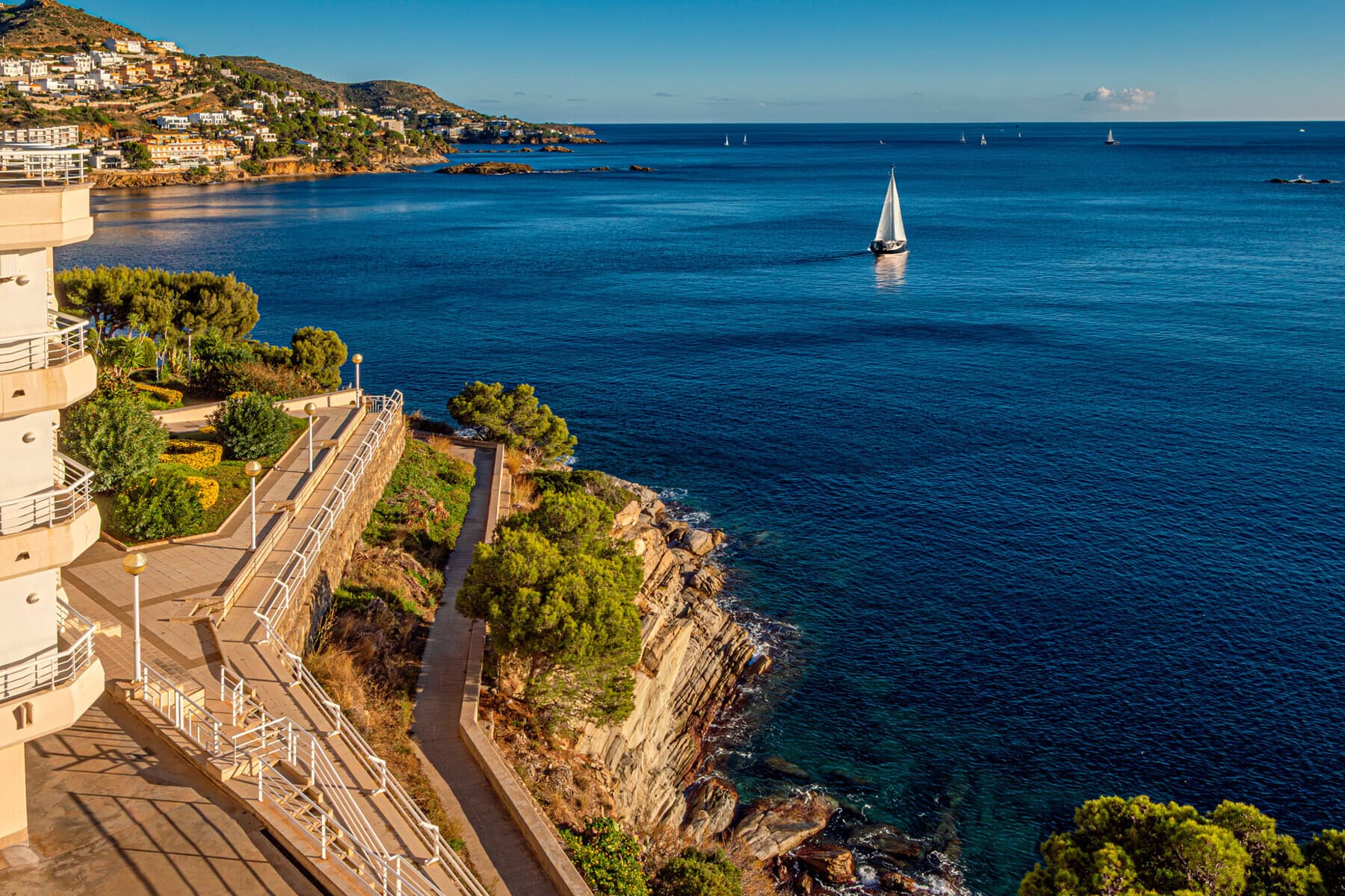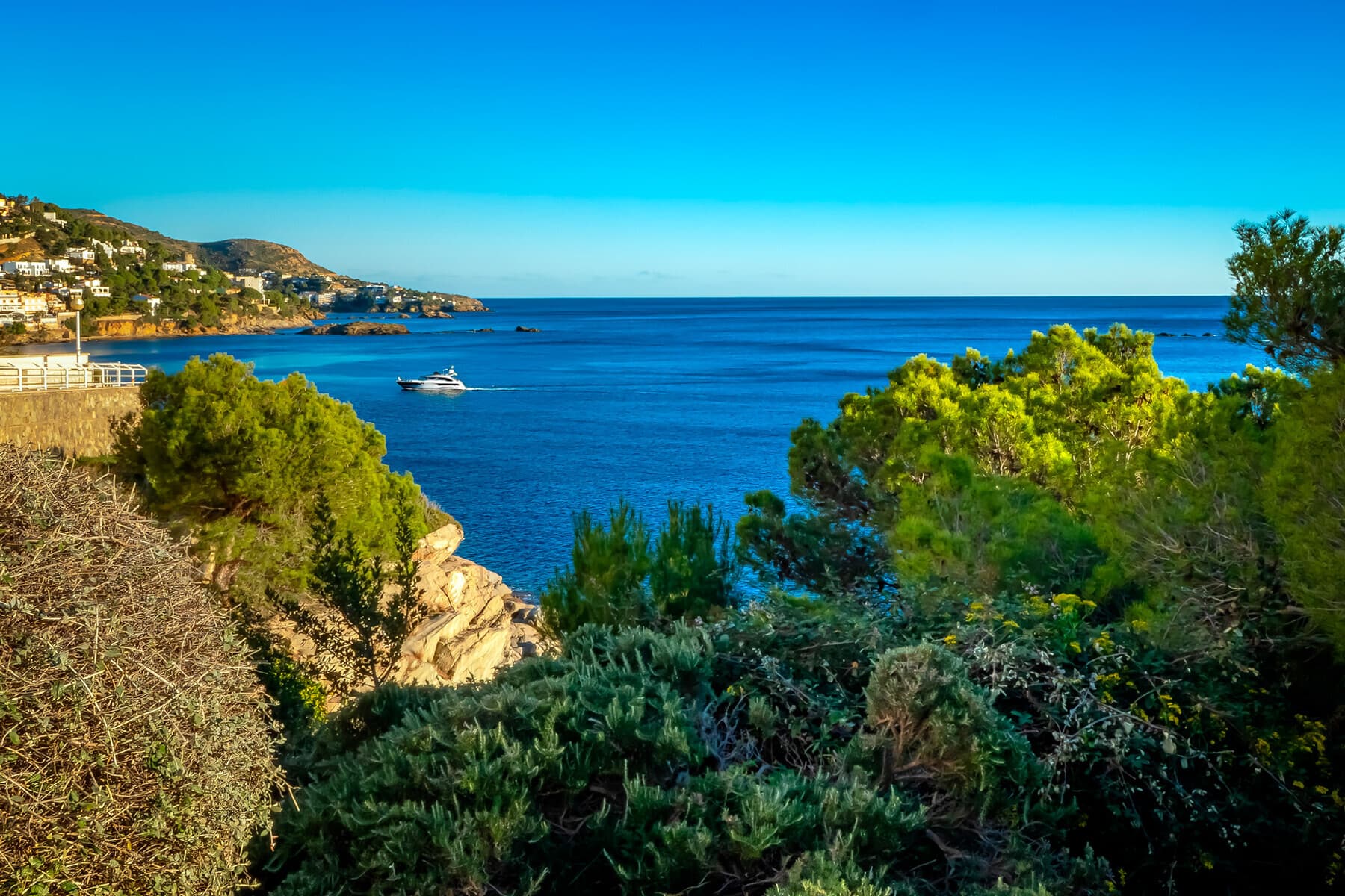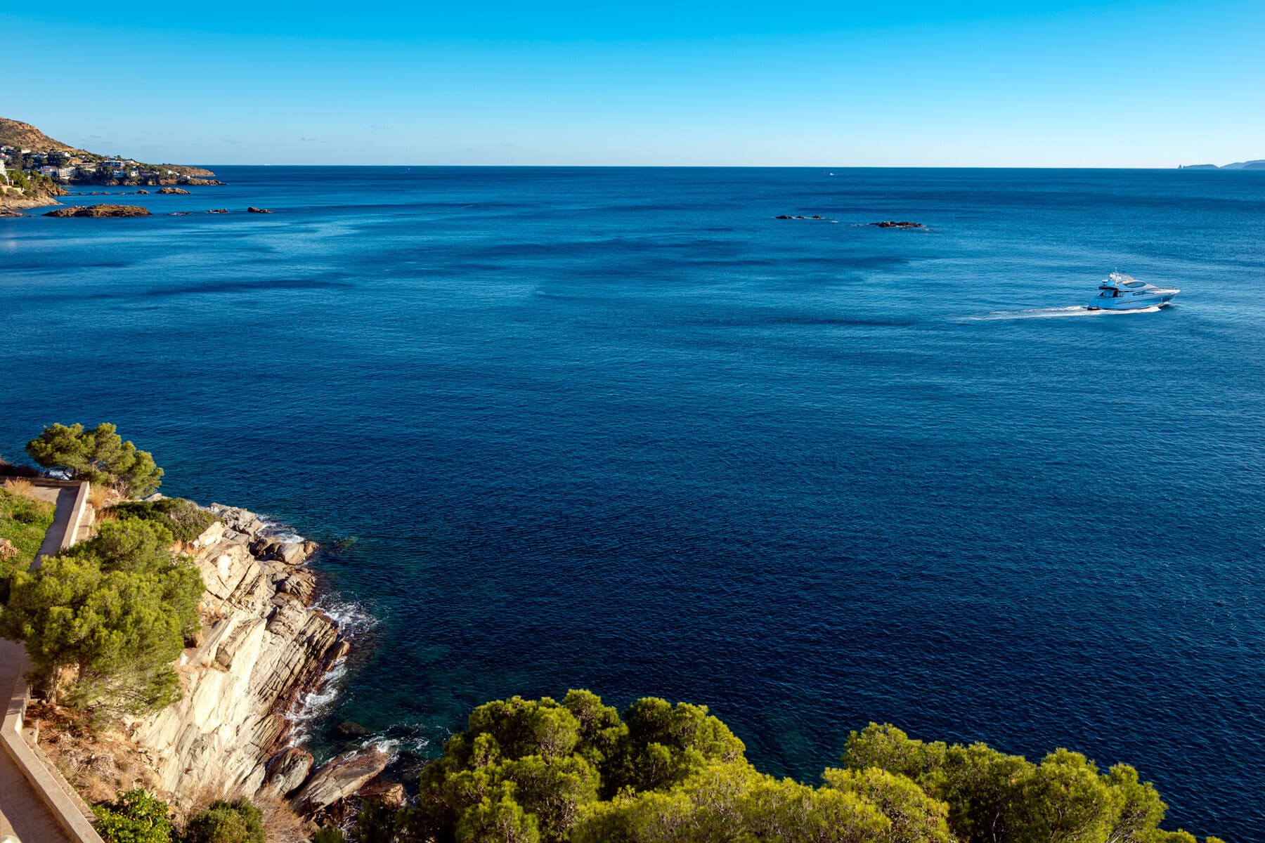 This south-facing luxury penthouse is located on the seafront in Canyelles and offers unparalleled panoramic views of the Mediterranean. The apartment is directly accessible from the parking level via an elevator to the top floor of the modern residential building.