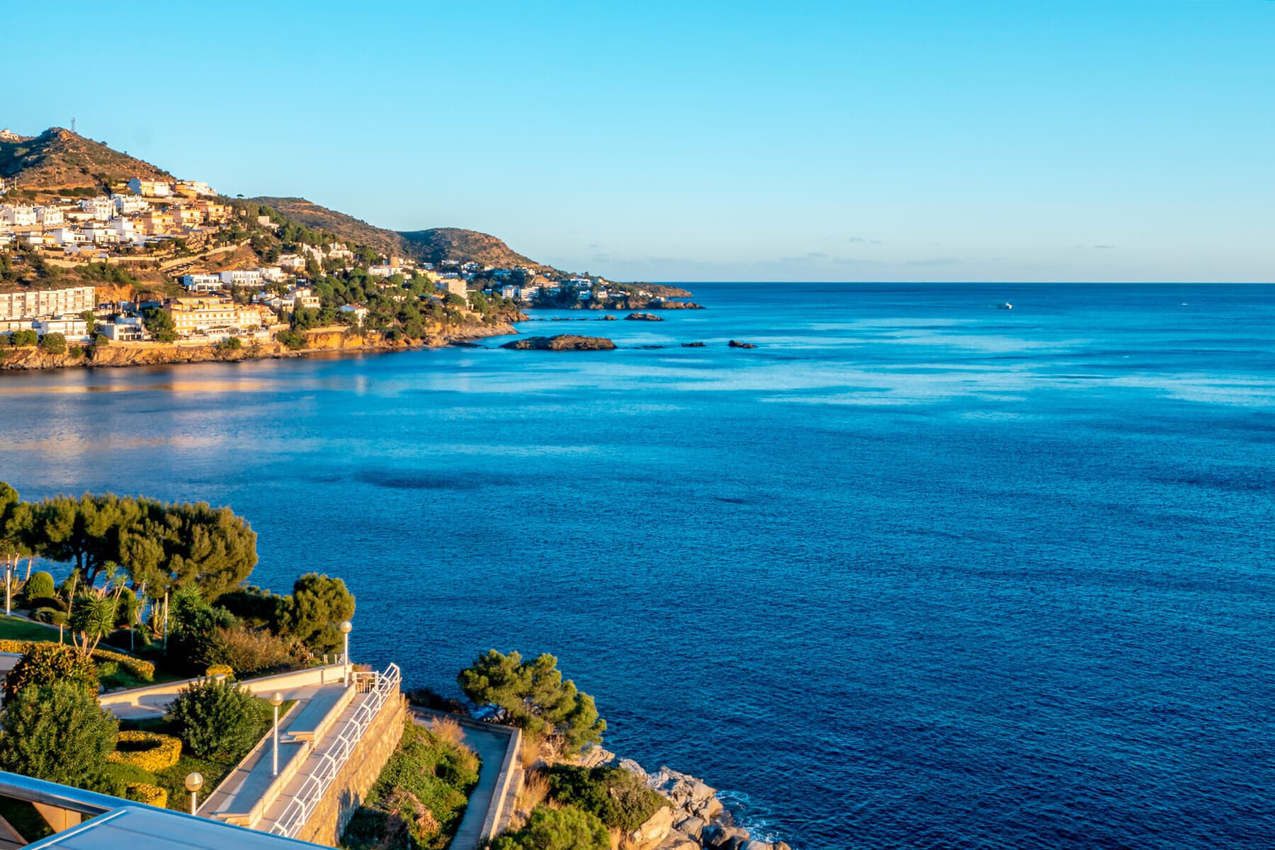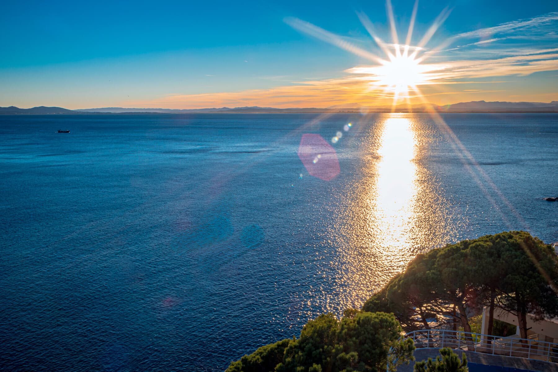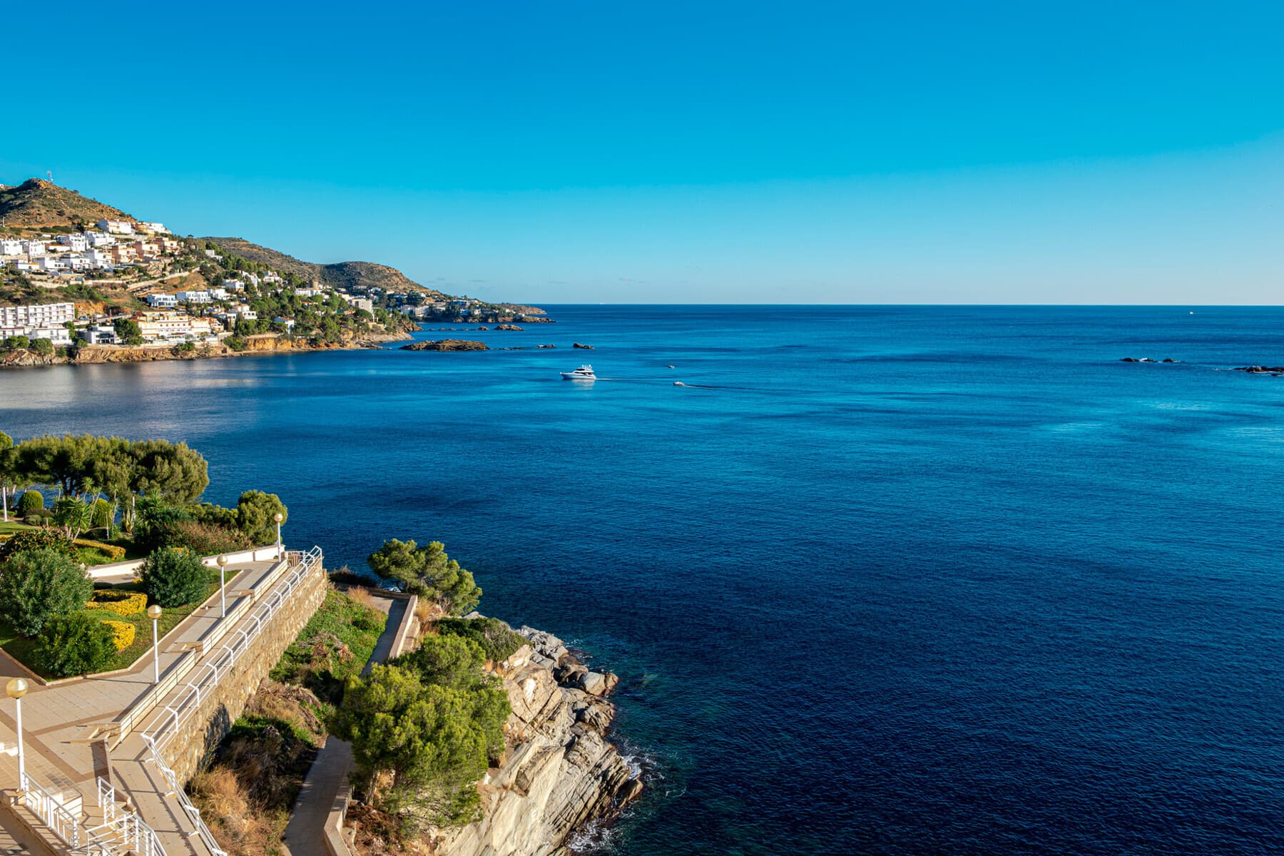 This south-facing luxury penthouse is located on the seafront in Canyelles and offers unparalleled panoramic views of the Mediterranean. The apartment is directly accessible from the parking level via an elevator to the top floor of the modern residential building.