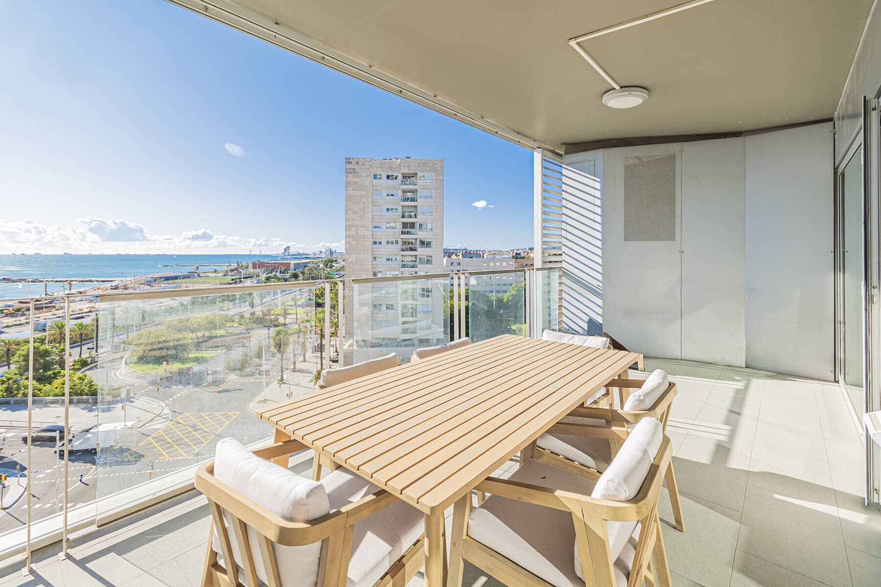 Magnificent property located in the prestigious Illa de la Llum, in Diagonal Mar, one of the most exclusive and valued areas of Barcelona. Located on the seafront and enjoying the best possible orientation, south facing, this property receives natural light throughout the day and offers a feeling of spaciousness, warmth and well-being difficult to match. Completely refurbished and ready to move in, it has modern finishes and an elegant and modern atmosphere in every corner. Its most outstanding space is the impressive 45-meter terrace, a real luxury in the city, perfect for relaxing, organizing outdoor gatherings or simply contemplating the privileged environment that surrounds it. The apartment is super bright, with spacious rooms where the light and the sea become protagonists.