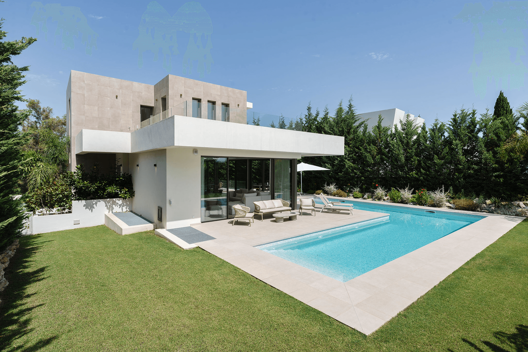 This meticulously crafted residence, completed in 2023, is situated within the exclusive and tranquil community of La Cerquilla in Nueva Andalucía, offering the finest in modern Mediterranean living.