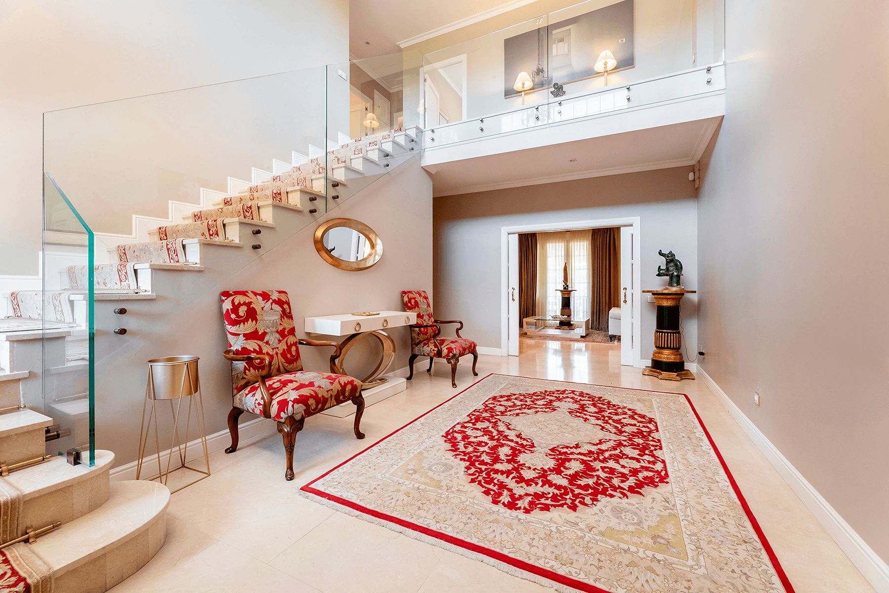 Upon entering the house, you will find a spacious foyer with an elegant central staircase. From here, the main spaces on the ground floor are distributed, such as a private office and a guest bathroom. The social area includes several bright living rooms, a formal dining room, and a covered terrace that allows you to enjoy the outdoors in any season. Read more