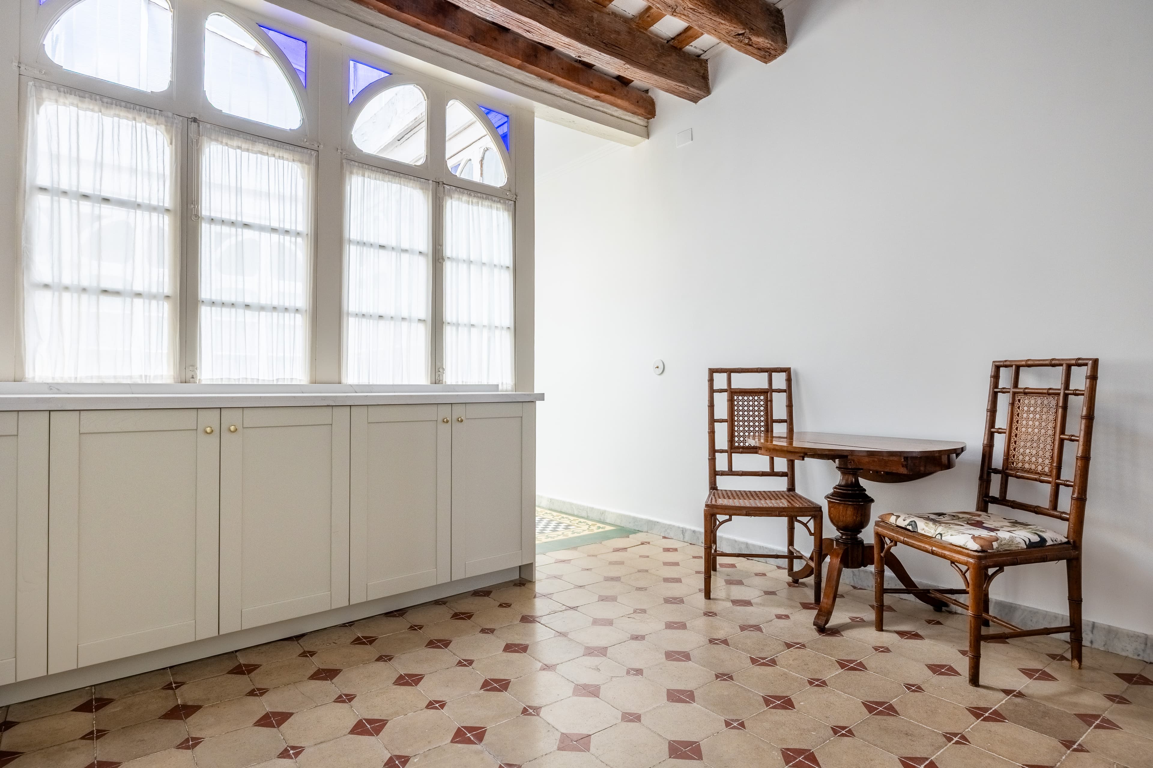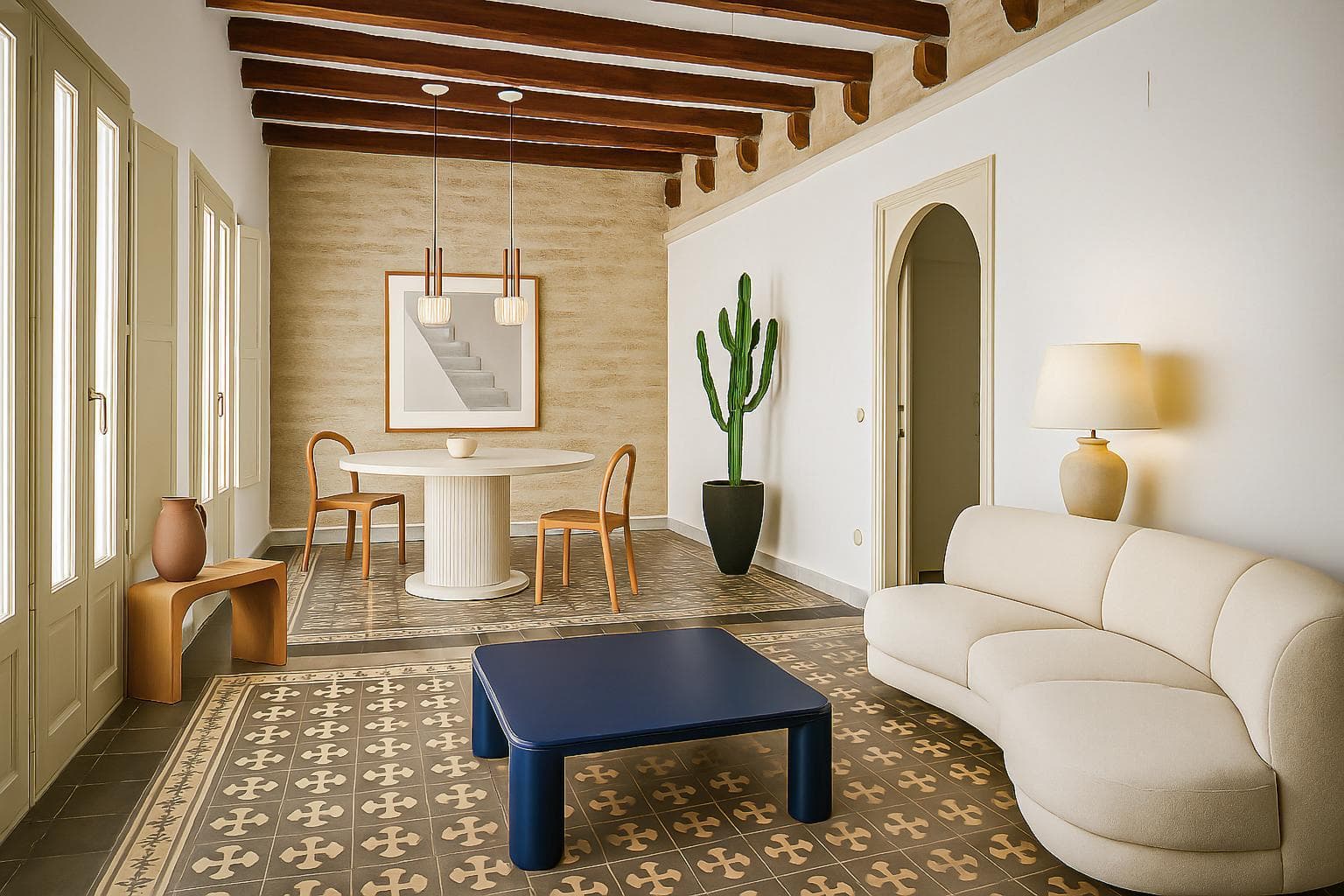 In the heart of the historic center of Seville, this renovated home combines the charm of classic architecture with a contemporary and functional interior design.