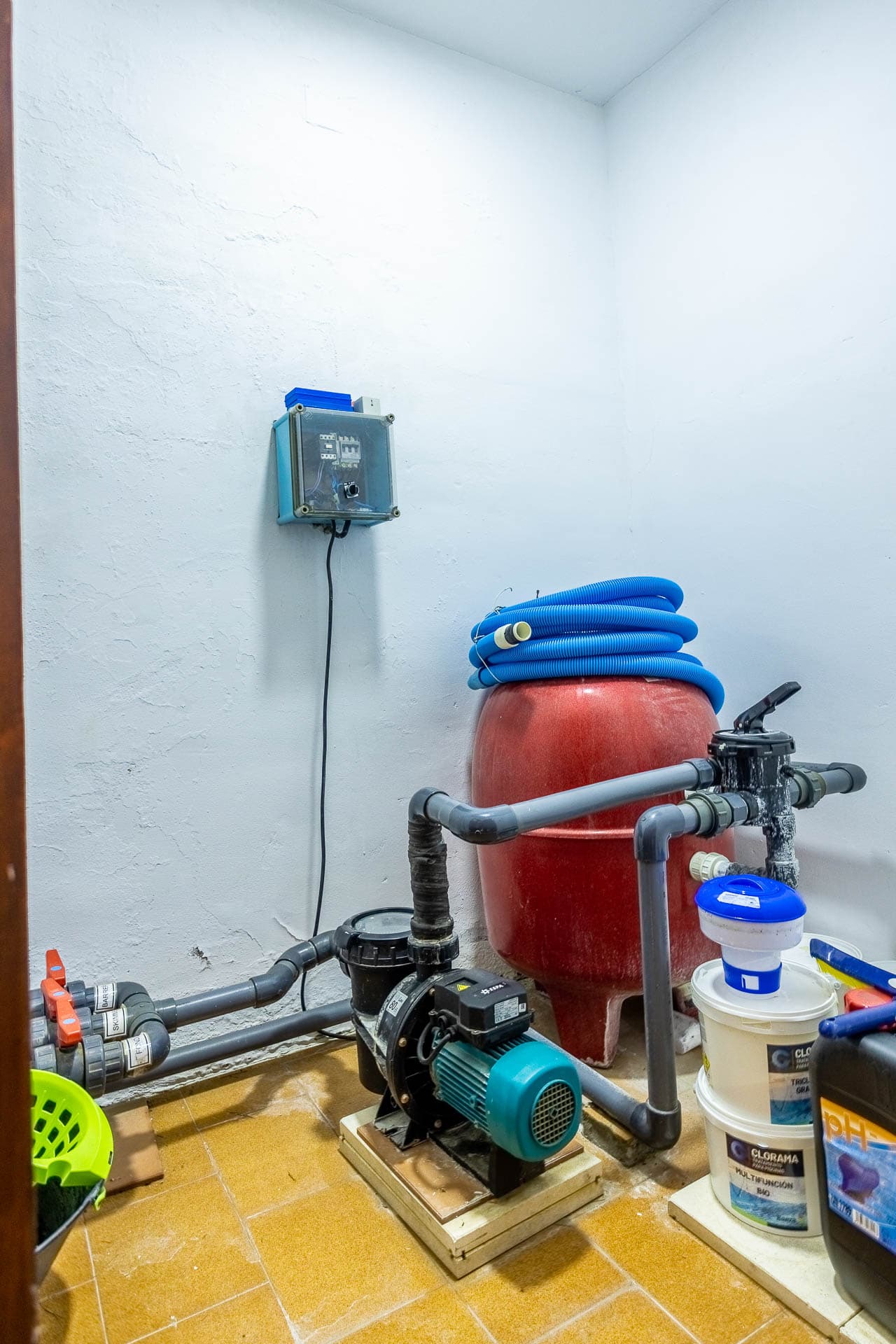 The house has been renovated and is distributed on a single floor where we find the living room, three bedrooms with three en-suite bathrooms, the kitchen and dining room with access to the garden and pool area. There is also a garage that can be converted into a fourth bedroom. All rooms have hot/cold air conditioning. The house has a tower where we can enjoy panoramic views of the entire city of Seville, and there is a storage room located there. Read more