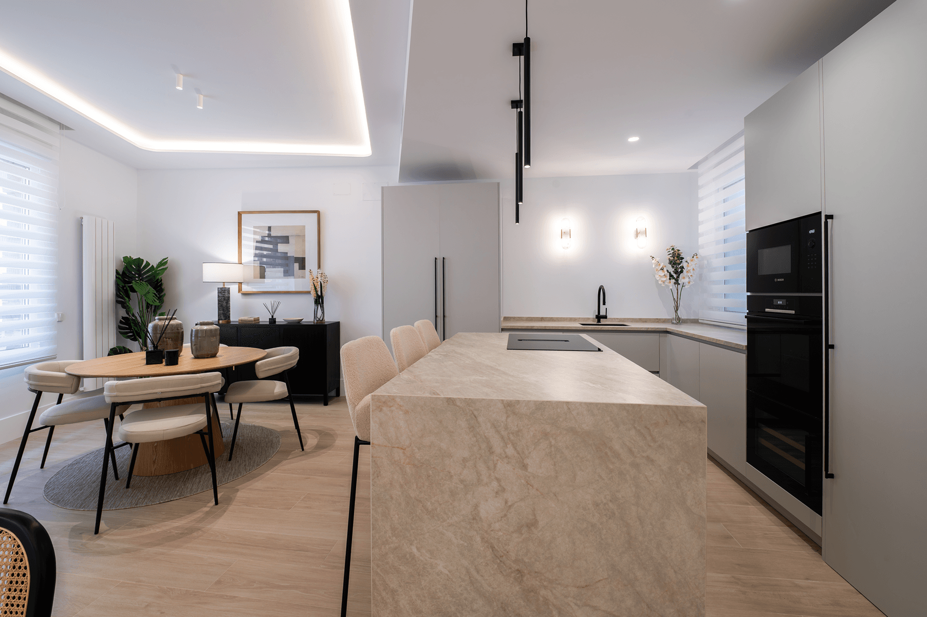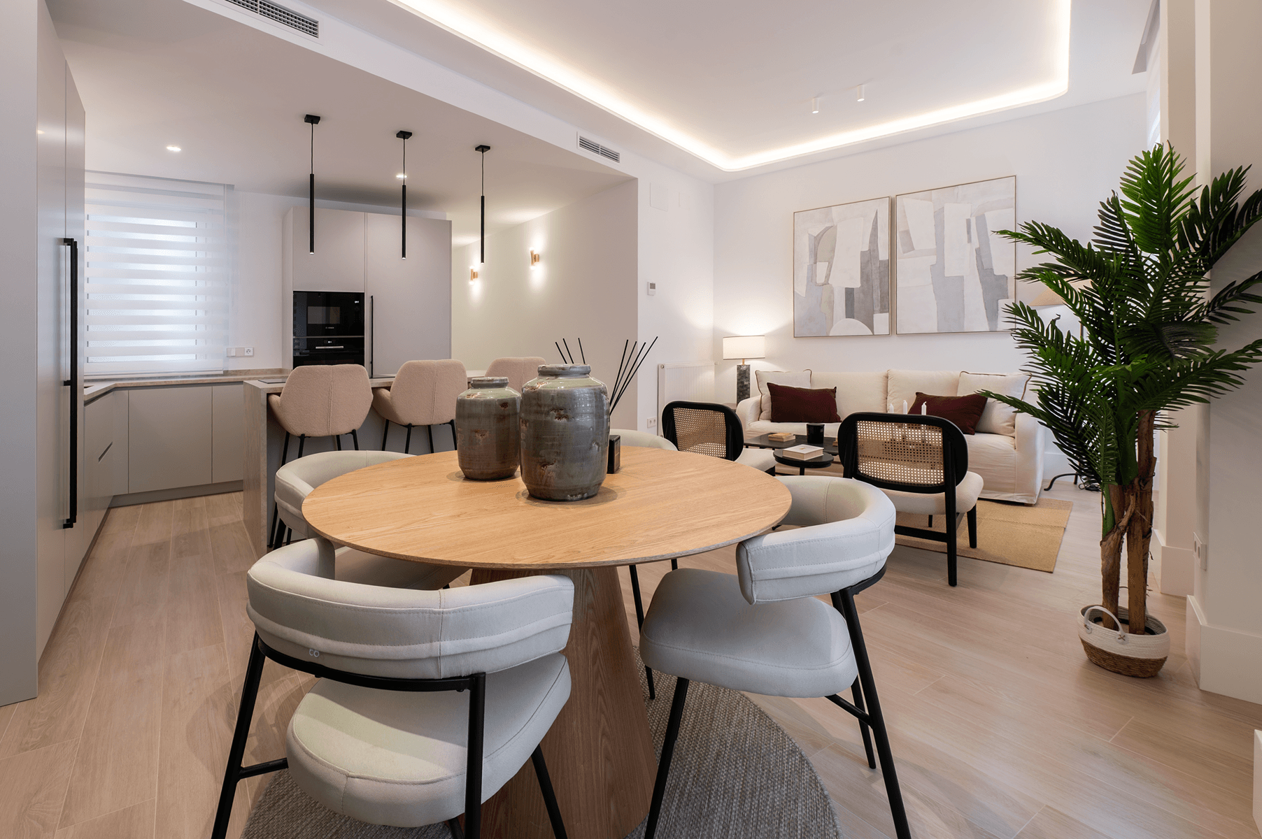 In the heart of Chamberí, on the quiet and well-located street of Magallanes, you will find this exclusive recently renovated home with high-quality materials and a contemporary design that combines elegance, functionality, and warmth.