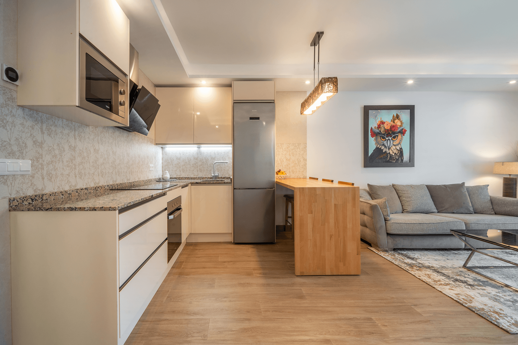 The property offers 150 m² of carefully distributed living space and has been recently renovated with a contemporary design that combines elegance and comfort. Upon entering the property, a foyer leads to a spacious open concept area that integrates the living room and kitchen. The custom-designed kitchen is fully equipped with state-of-the-art appliances and features a practical central island that invites you to enjoy both gastronomy and socializing. The living area, decorated in soft tones, opens through large windows to a private terrace, flooding the space with natural light. Read more