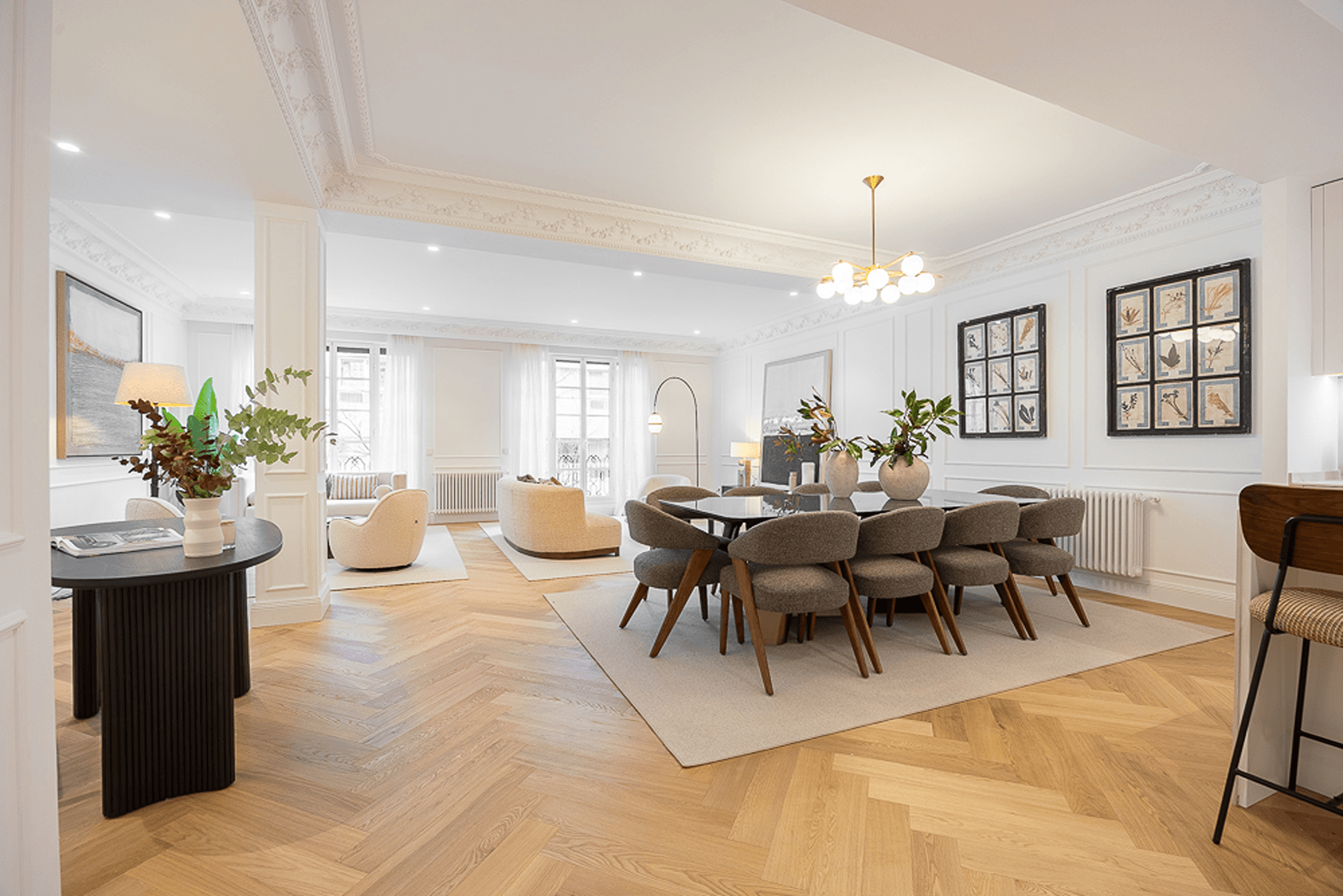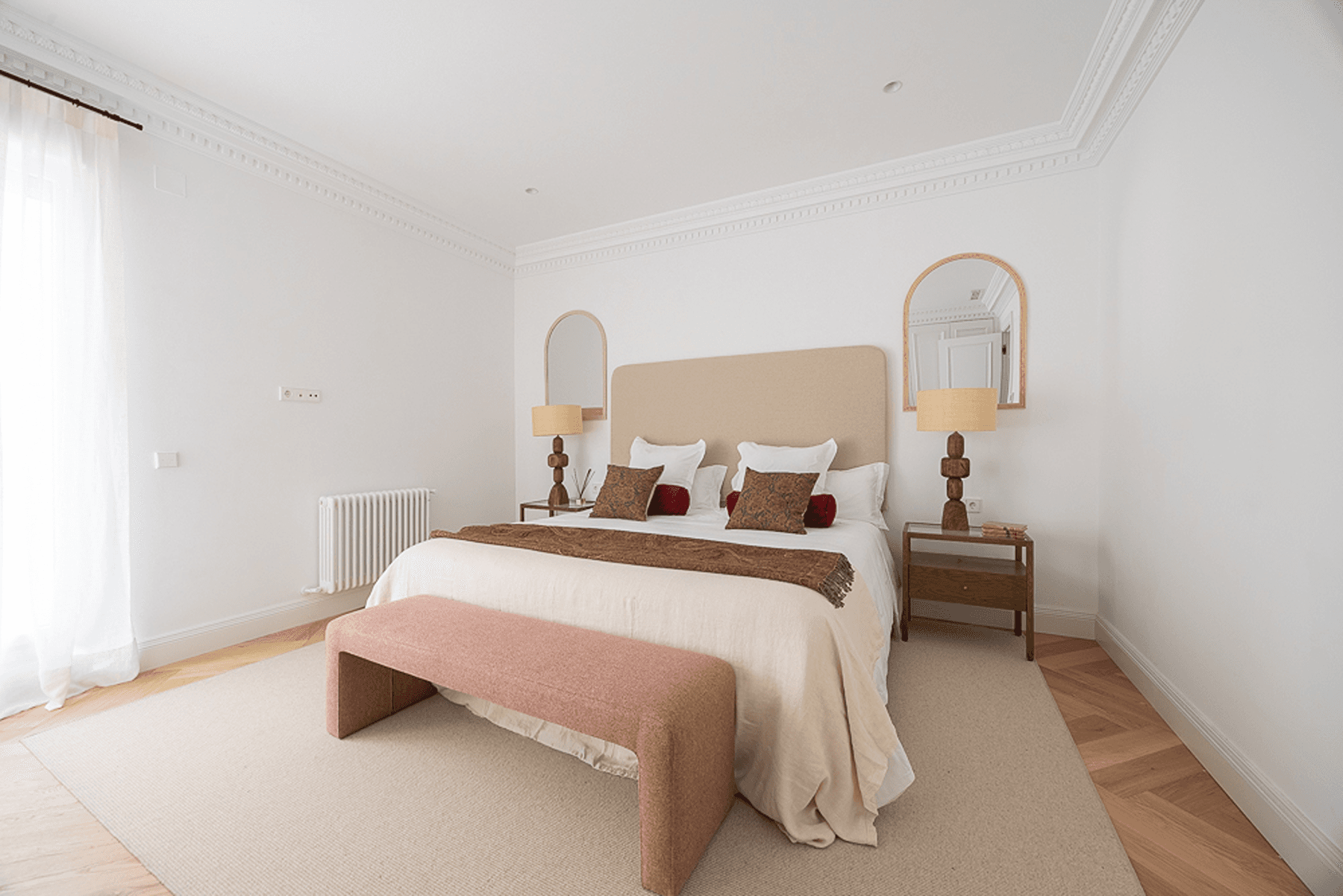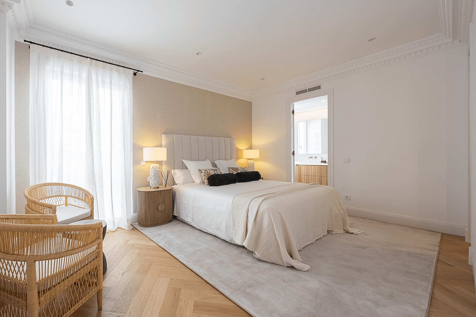 Renovated and brand new apartment, fully furnished, located on the third floor of an elegant classic building from the 30s, in the prestigious neighborhood of Castellana, within the Salamanca district. A property that combines the charm of stately architecture with a contemporary interior designed for maximum comfort.
