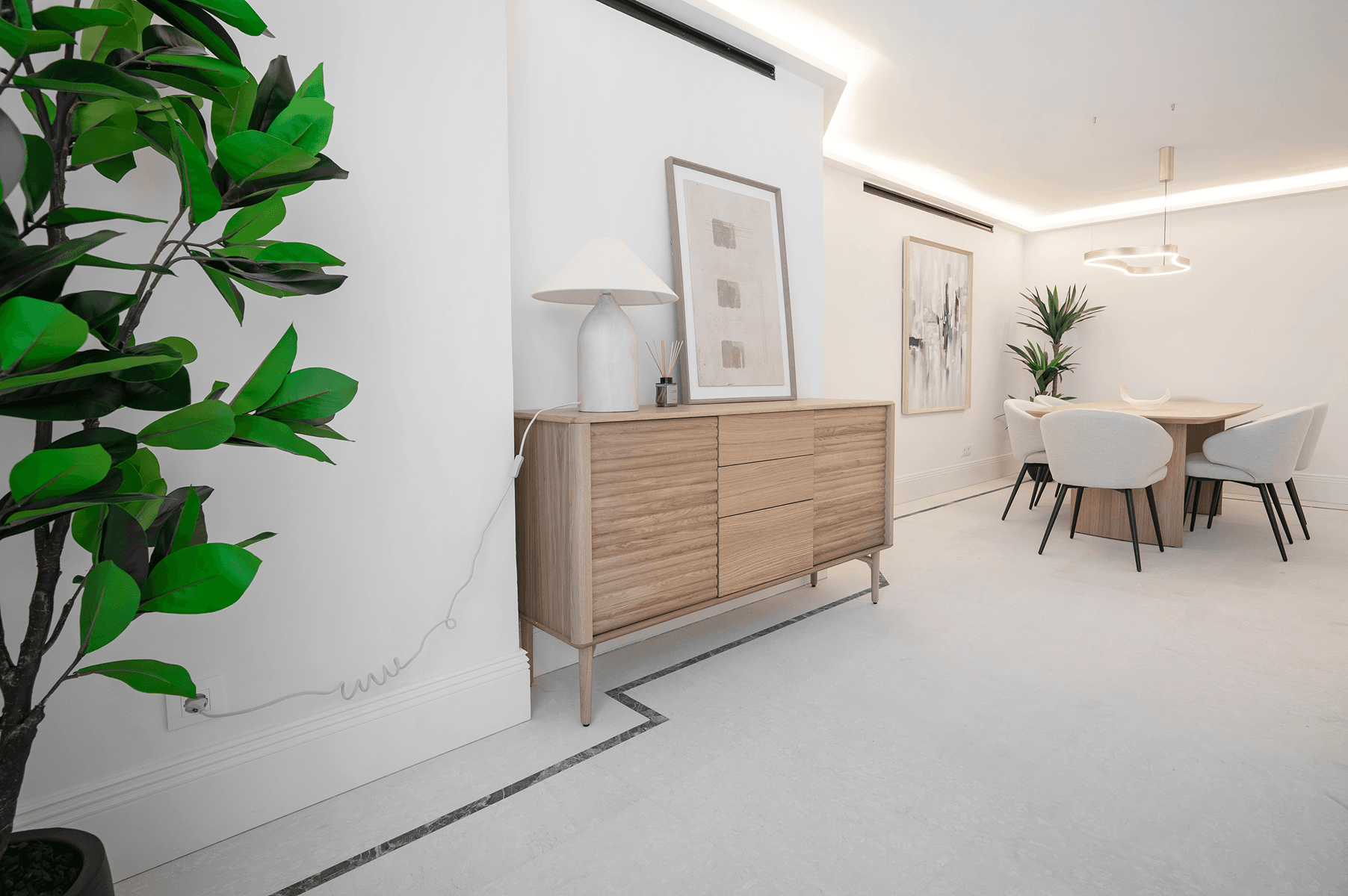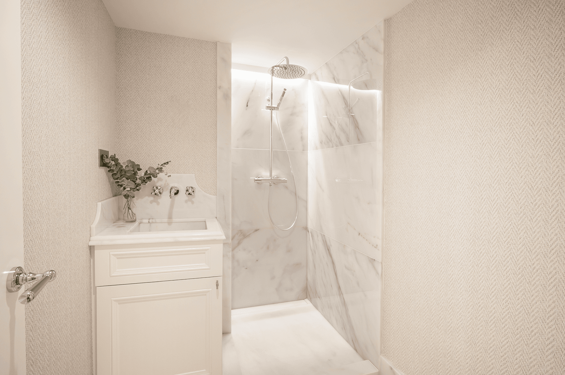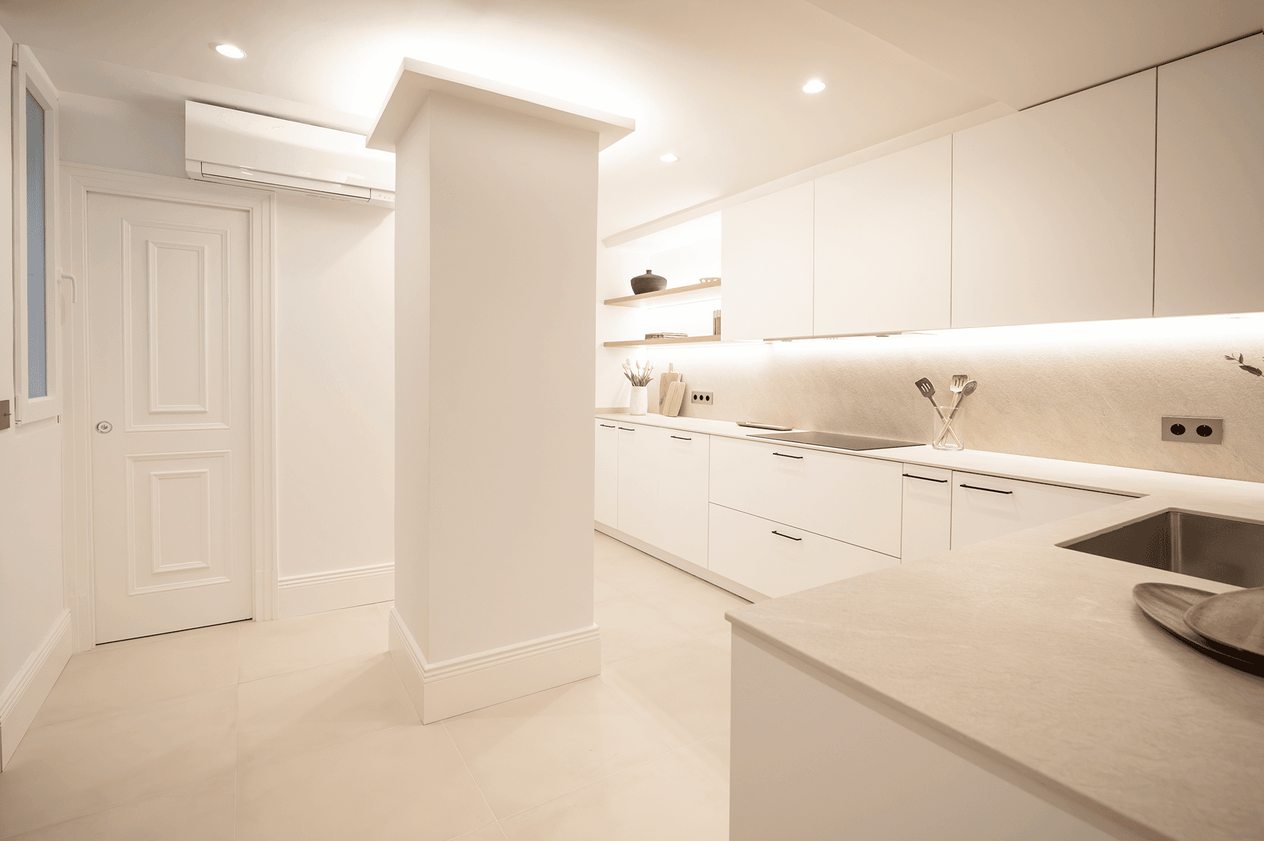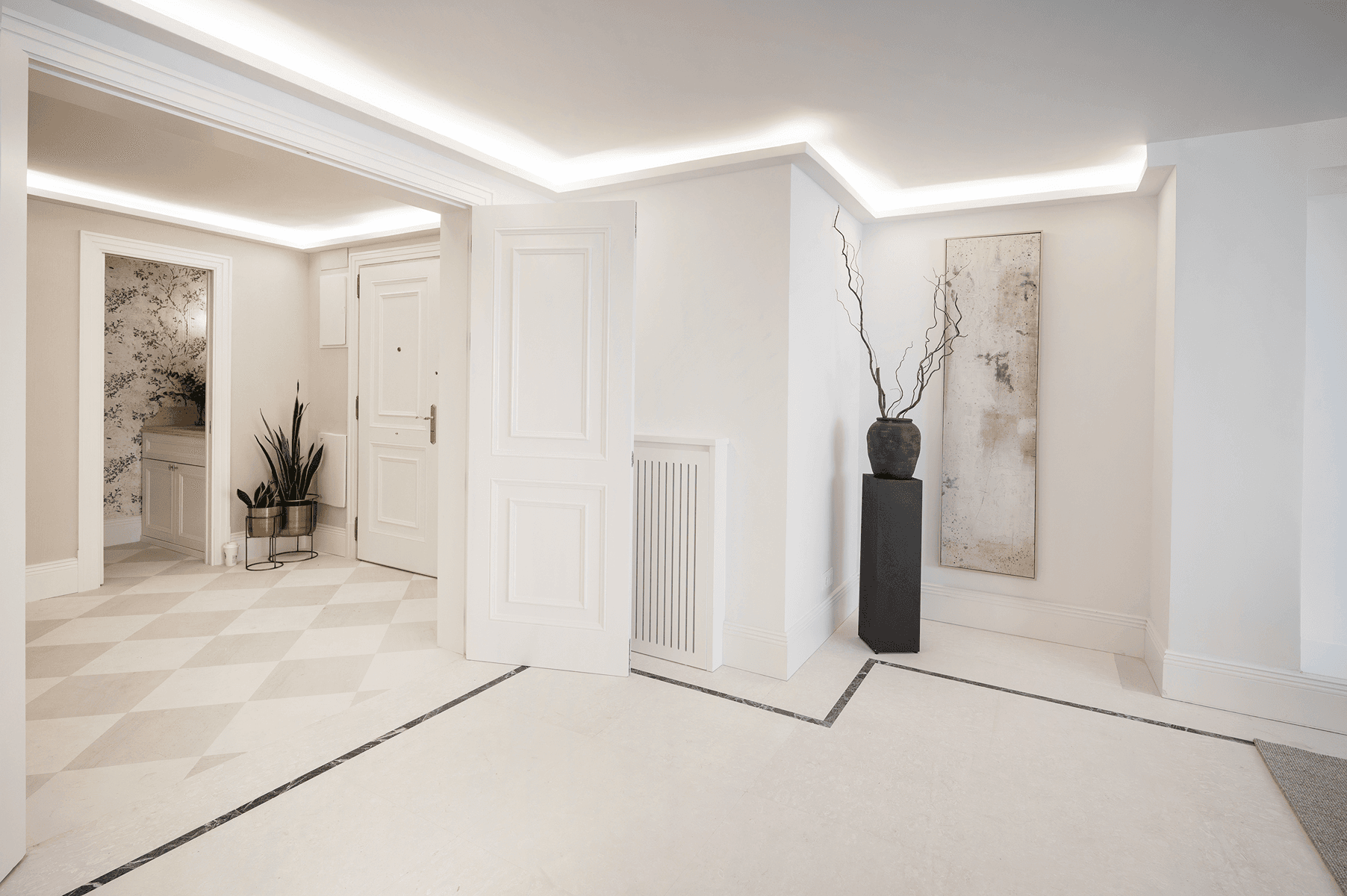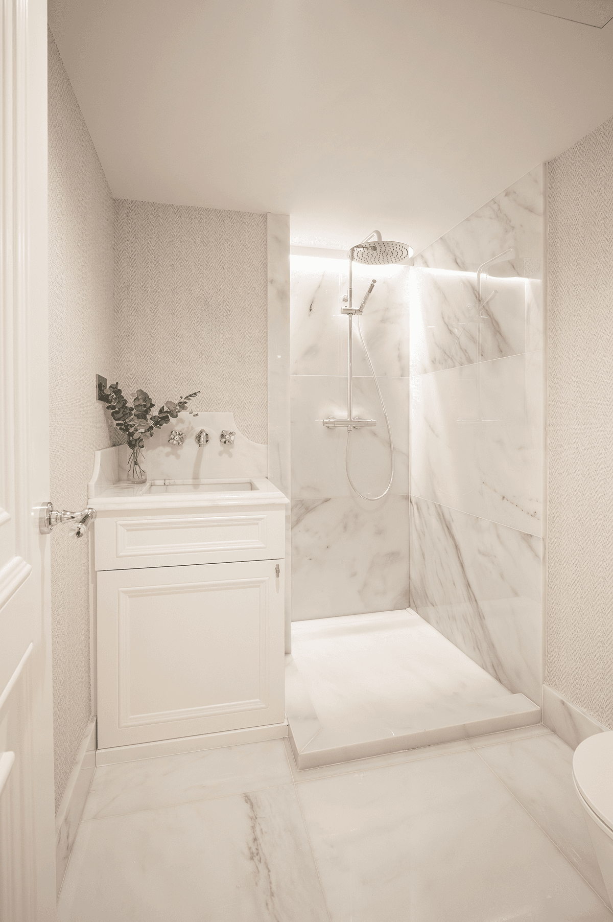 On Miguel Ángel Street, in the heart of the Almagro neighborhood, is this 176 m² home that combines the character of classical Madrid architecture with a contemporary and functional interior design.