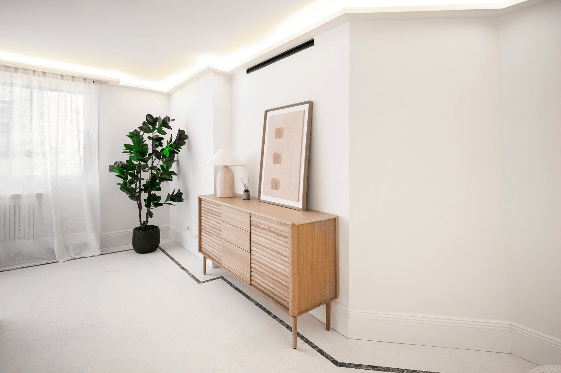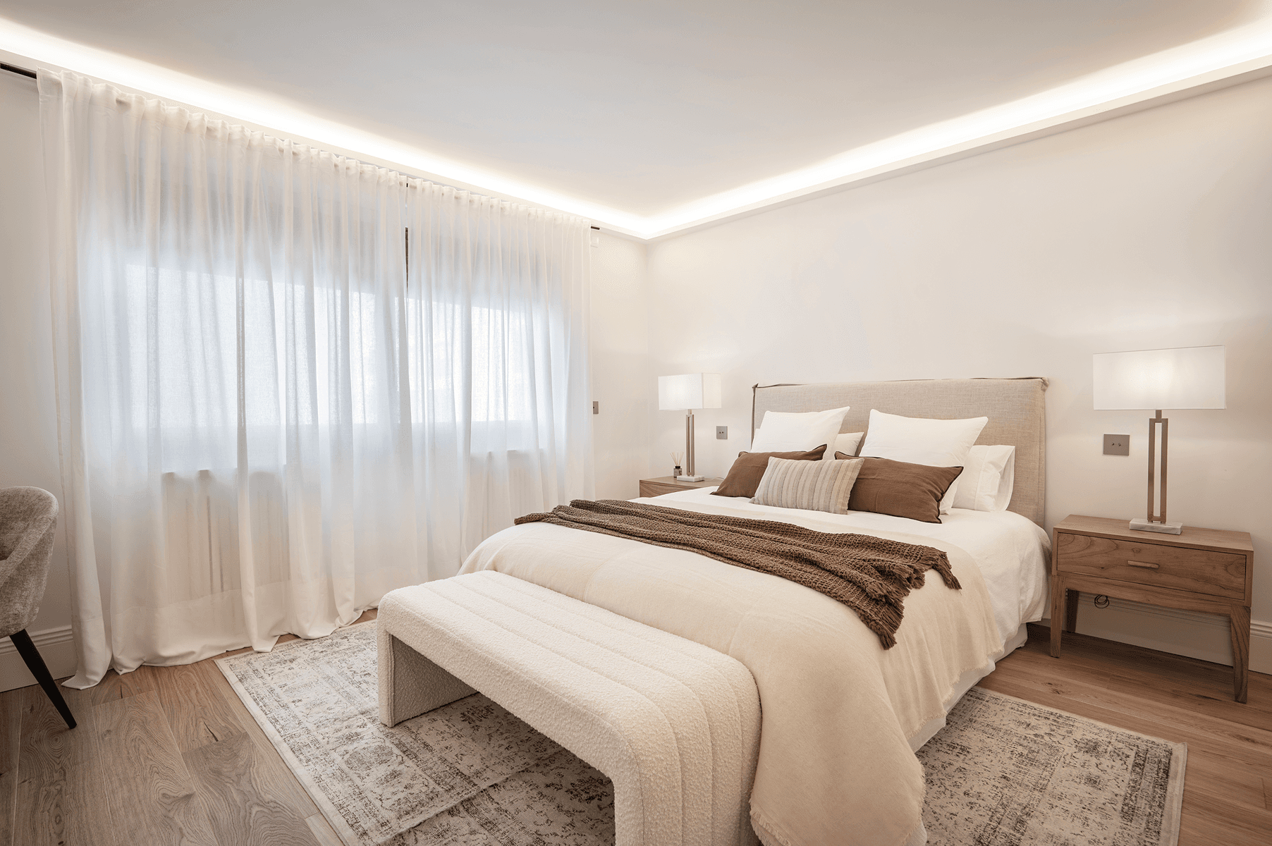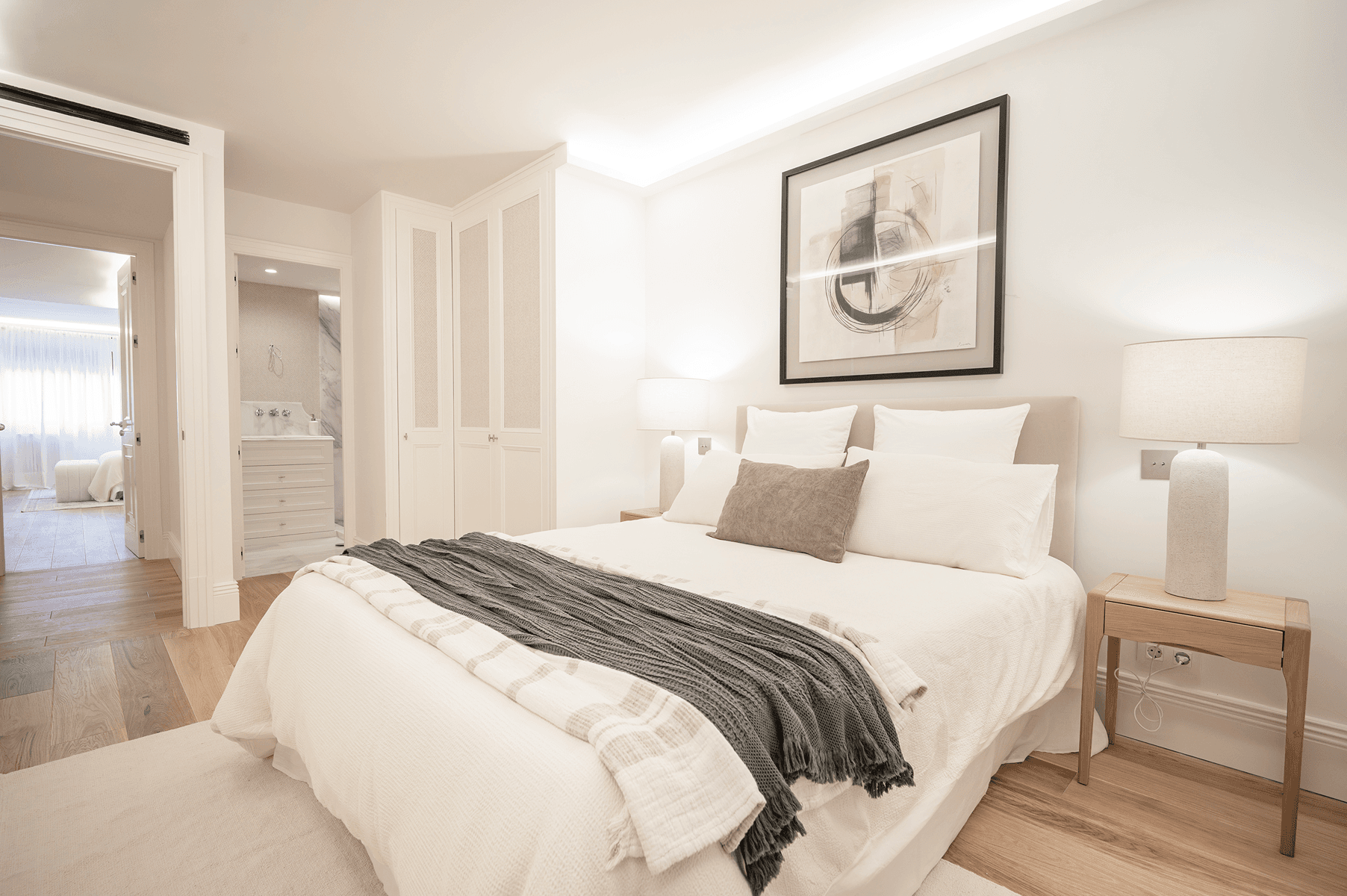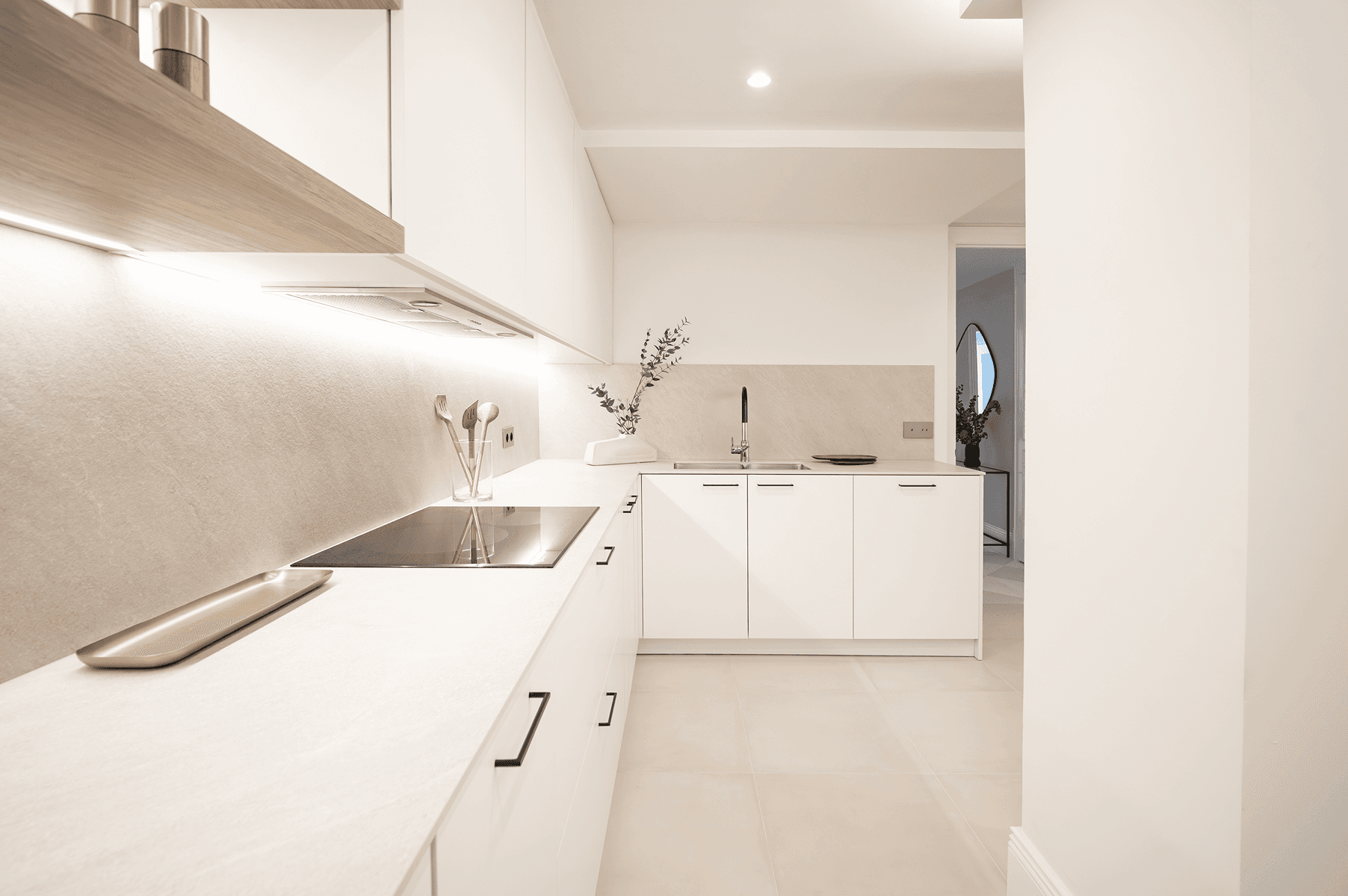 On Miguel Ángel Street, in the heart of the Almagro neighborhood, is this 176 m² home that combines the character of classical Madrid architecture with a contemporary and functional interior design.