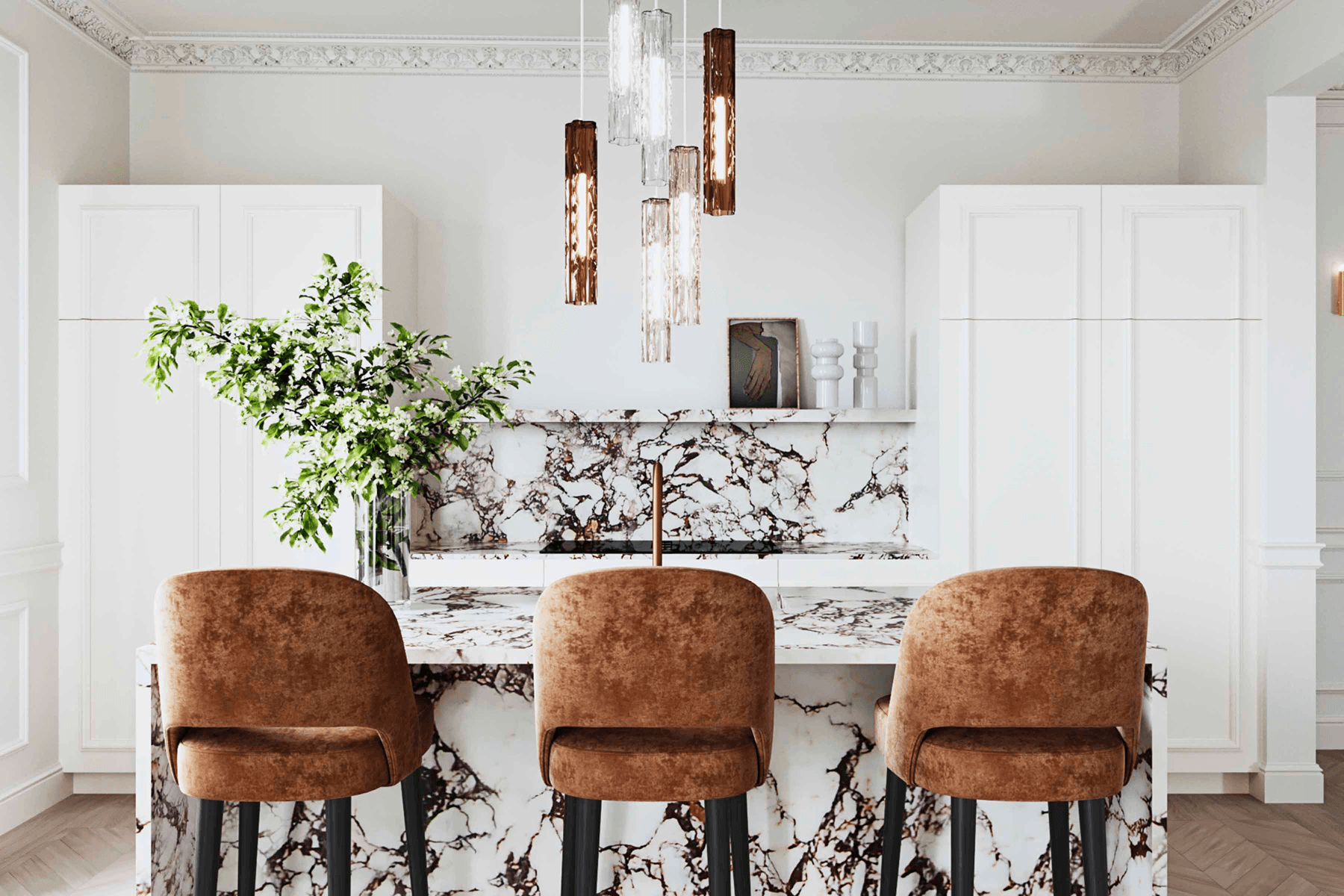 With a constructed area of 173 m², the house is distributed in three bedrooms, all with ensuite bathrooms, a spacious living room with living and dining areas, and a modern integrated kitchen that opens onto two balconies overlooking a quiet square. The renovation project respects the original architectural elements, such as high ceilings, natural oak floors, and decorative moldings, combining them with current materials that provide comfort and functionality. Read more