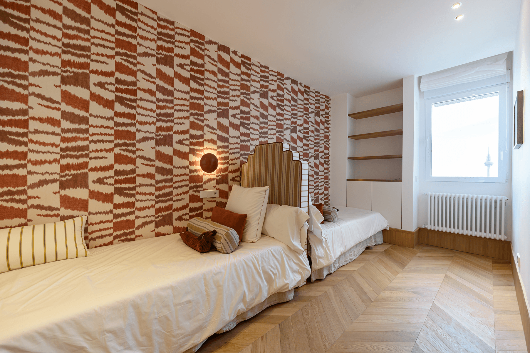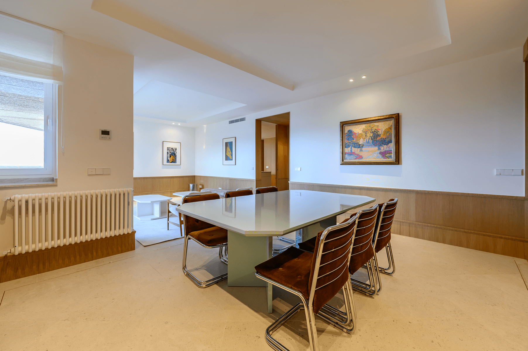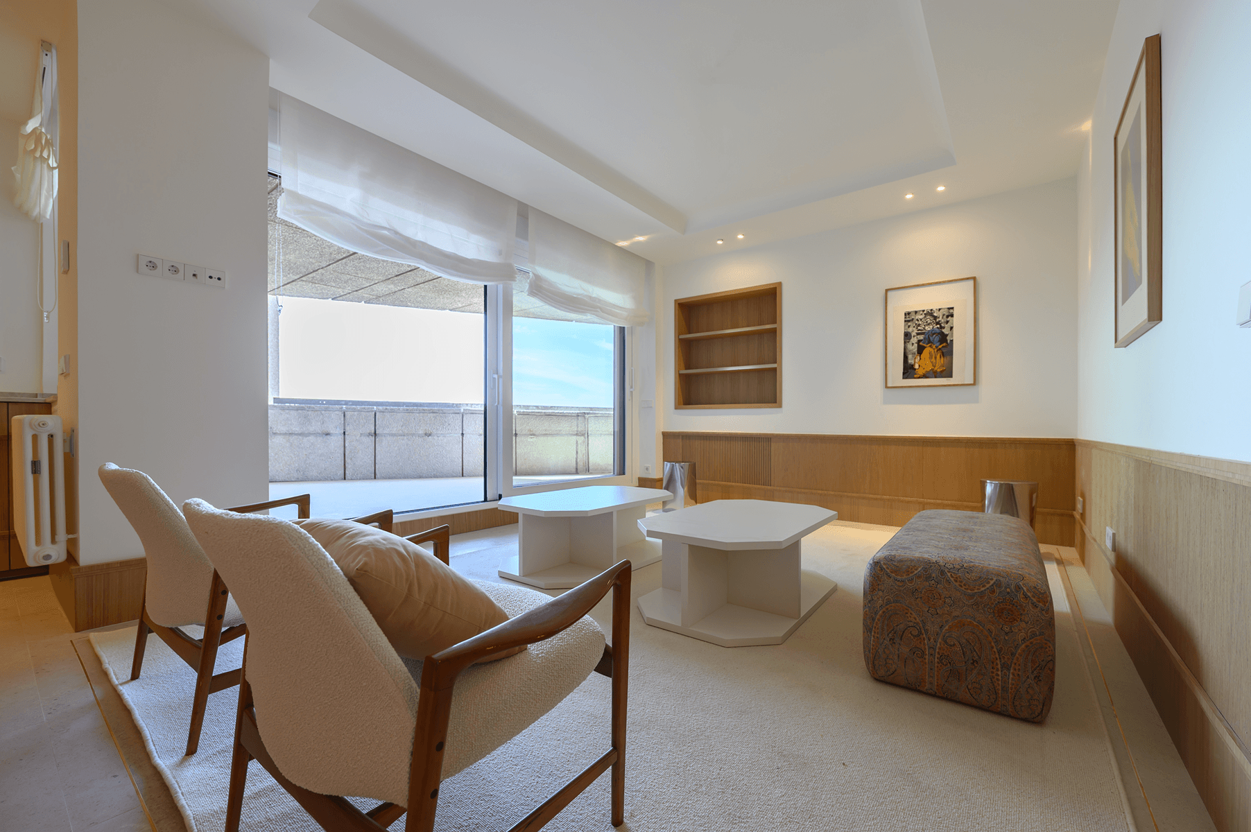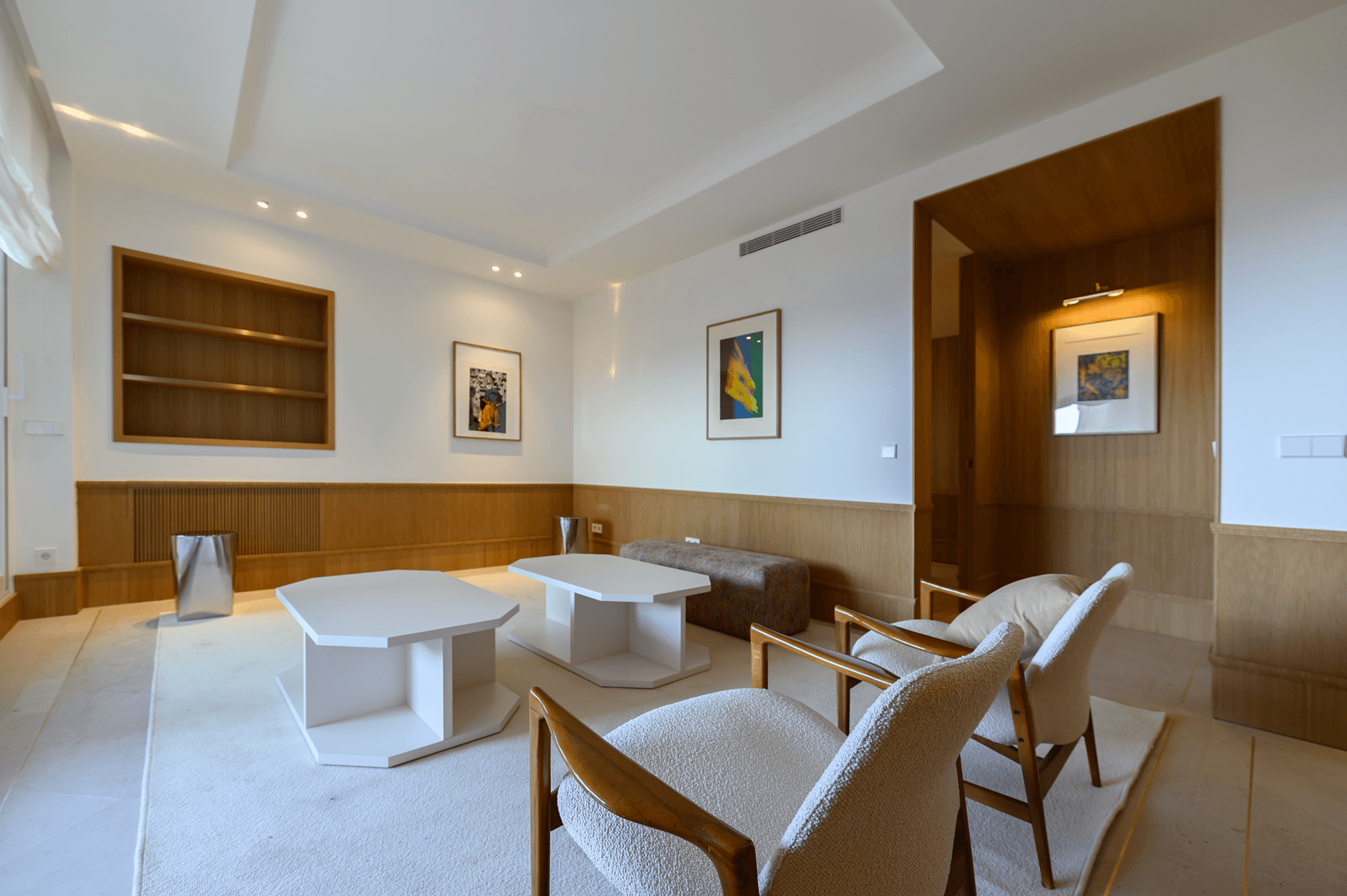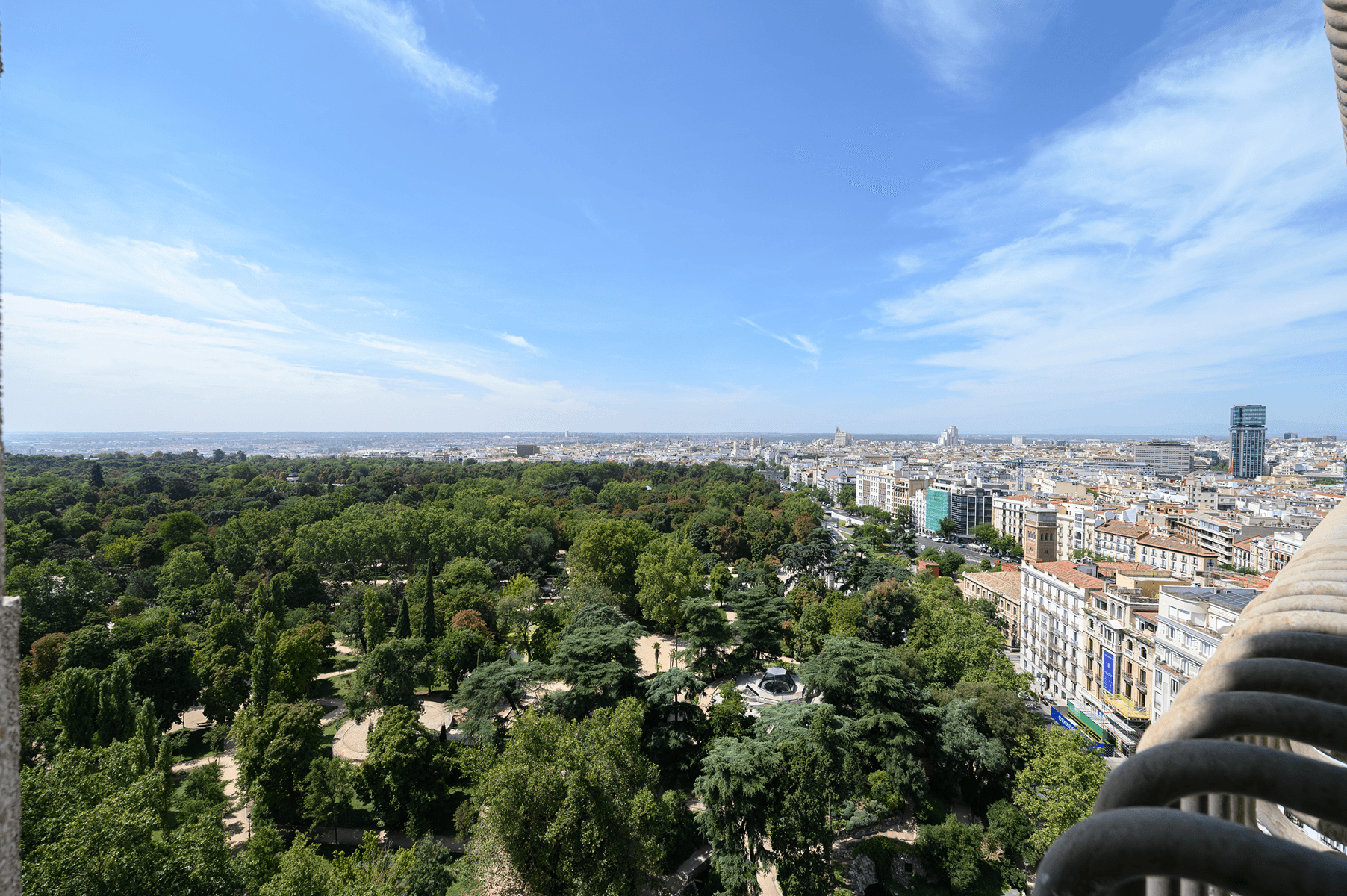 On the 16th floor of the emblematic Torre de Valencia, this extraordinary newly renovated home is located, redefining contemporary luxury in the heart of Madrid. A unique home, not only for its privileged location facing Retiro Park, but also for its impressive open views of Puerta de Alcalá, the city skyline, and Retiro itself, which seem to stretch to infinity.