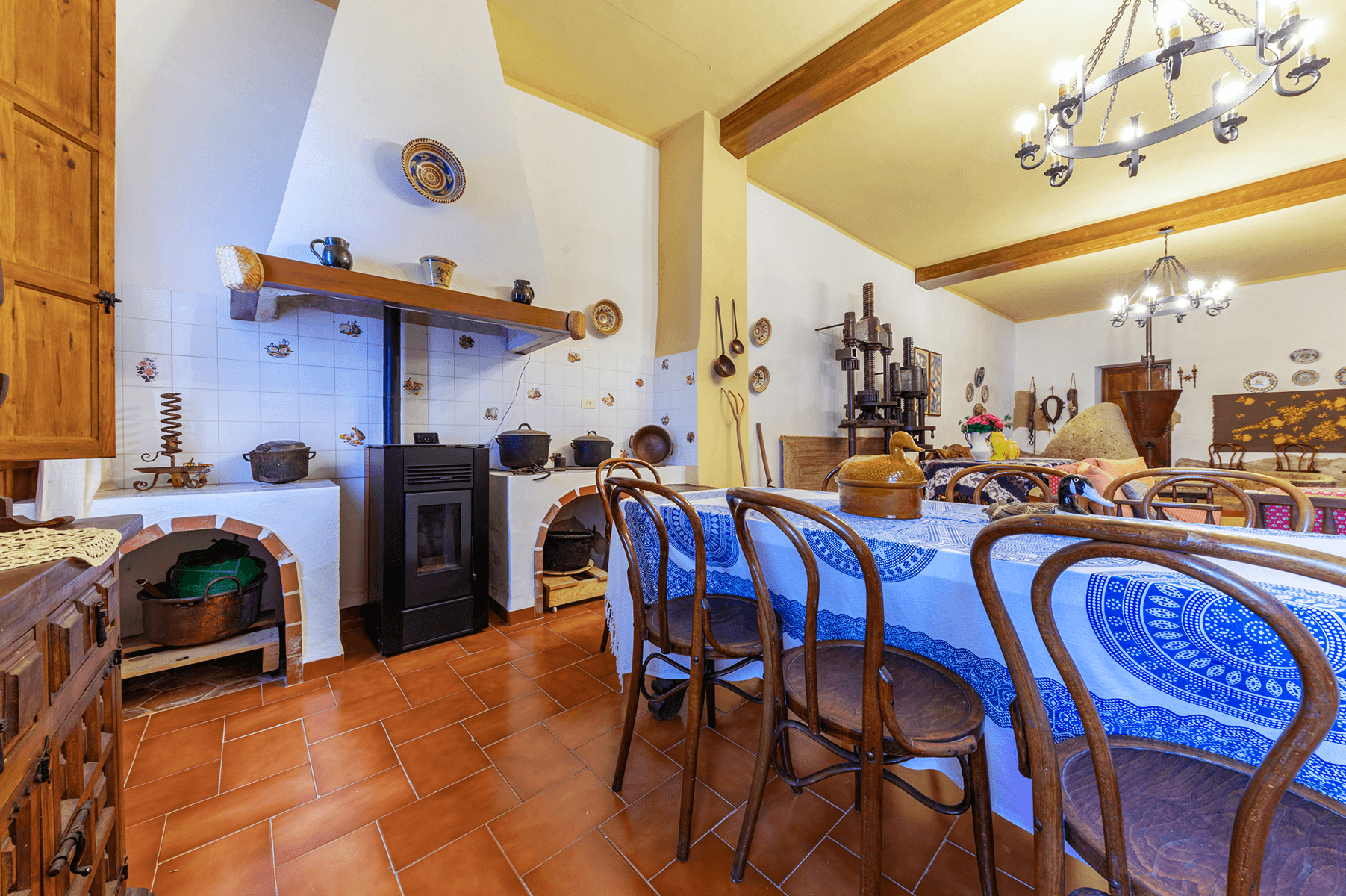 The interior of the residence stands out for an exquisite blend of marble floors, noble wood parquet, and exposed wooden beams, which together create a warm and inviting atmosphere. The property boasts six bedrooms and seven bathrooms, several of them en-suite, providing ample living space. The residential offer is completed with a modern kitchen, a library, and a laundry room. Other features include air conditioning, fitted wardrobes, and a private pool. Read more