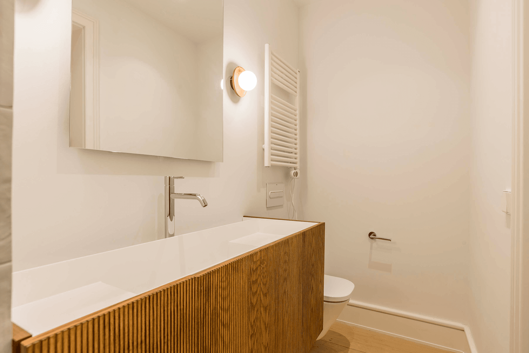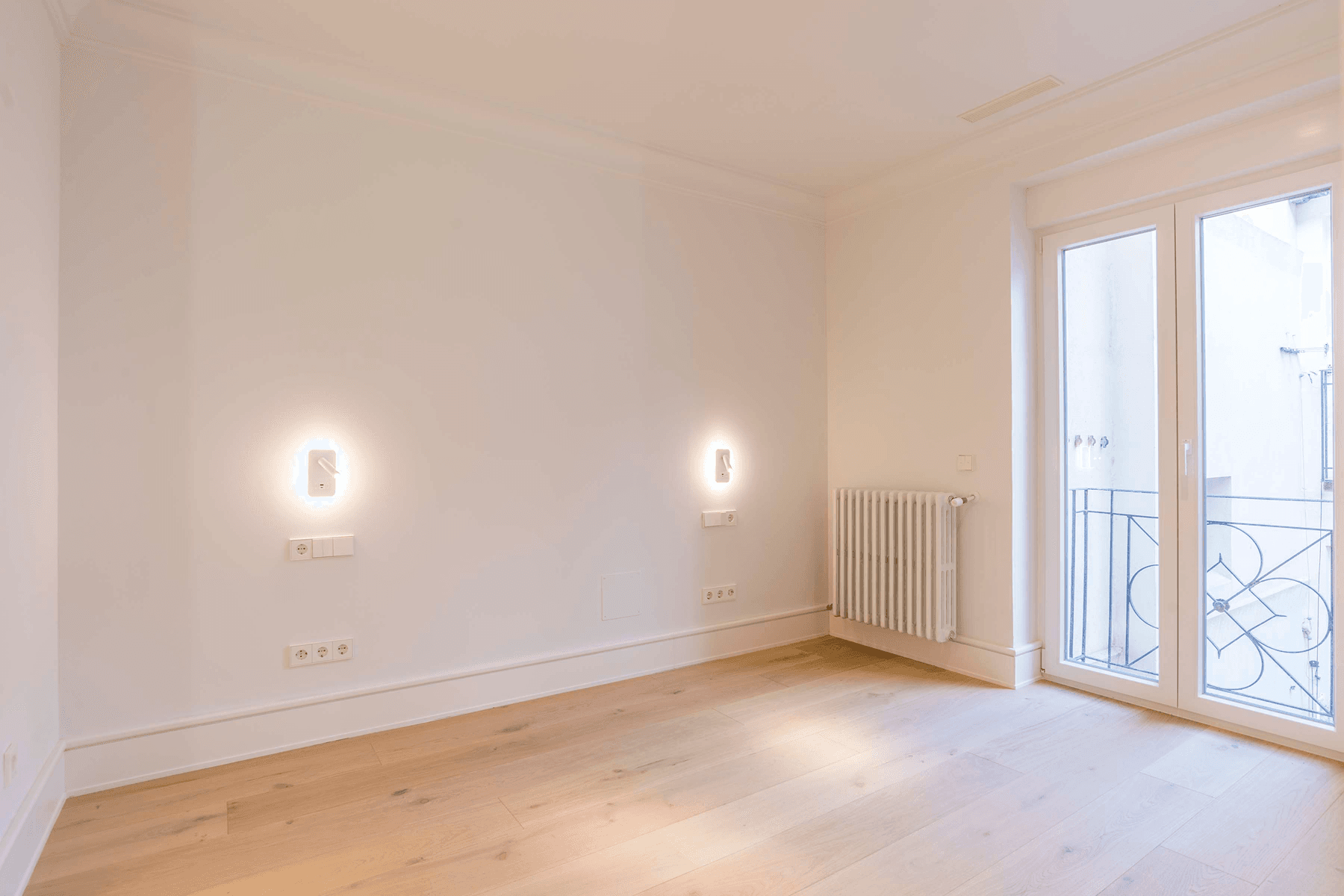 The property offers three bedrooms, three bathrooms, and a spacious exterior living room, characterized by windows that allow natural light to enter throughout the day. The high ceilings and the complete renovation carried out with contemporary criteria provide a serene and functional ambiance, designed to enjoy a comfortable life in the center of Madrid. Each room has been designed to convey clarity and a sense of continuity, promoting a practical and aesthetically balanced use. Read more