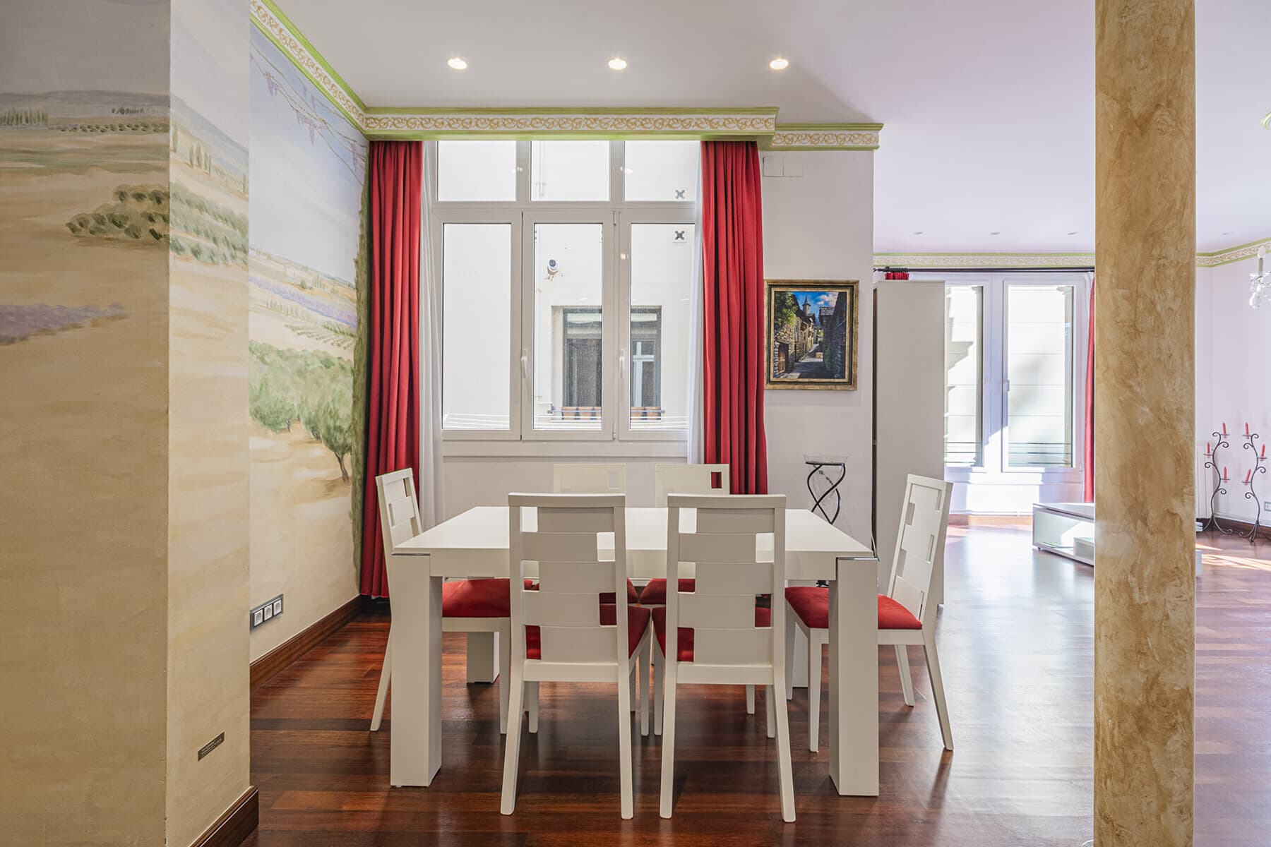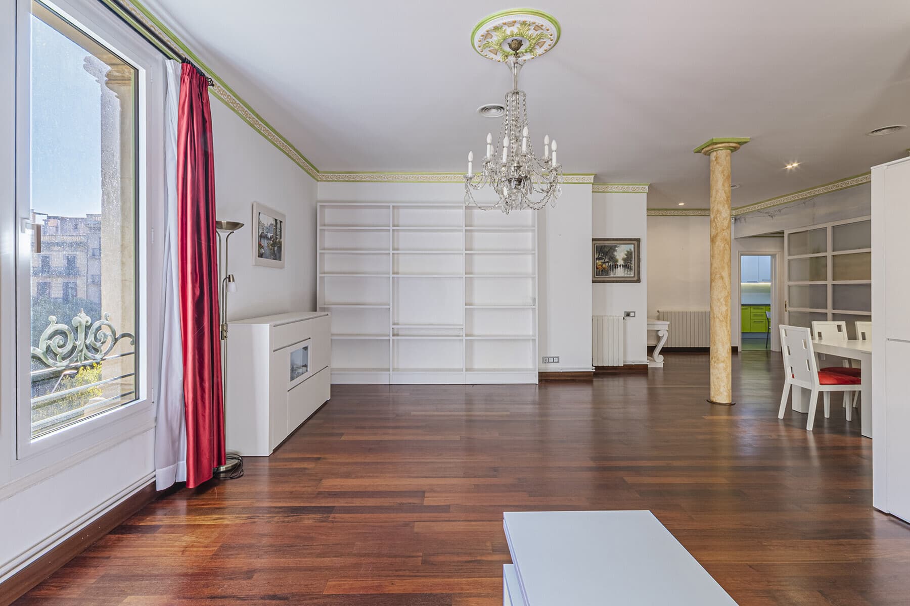 Discover this residential apartment in Dreta de l'Eixample, located in a regal building that retains its character and coexists with a practical update. The property maintains highly valued elements such as original moldings on the ceilings, natural oak floors in excellent condition and good height that enhances the feeling of spaciousness. The living area, open and bright, receives plenty of natural light during the day and connects to a functional separate kitchen.