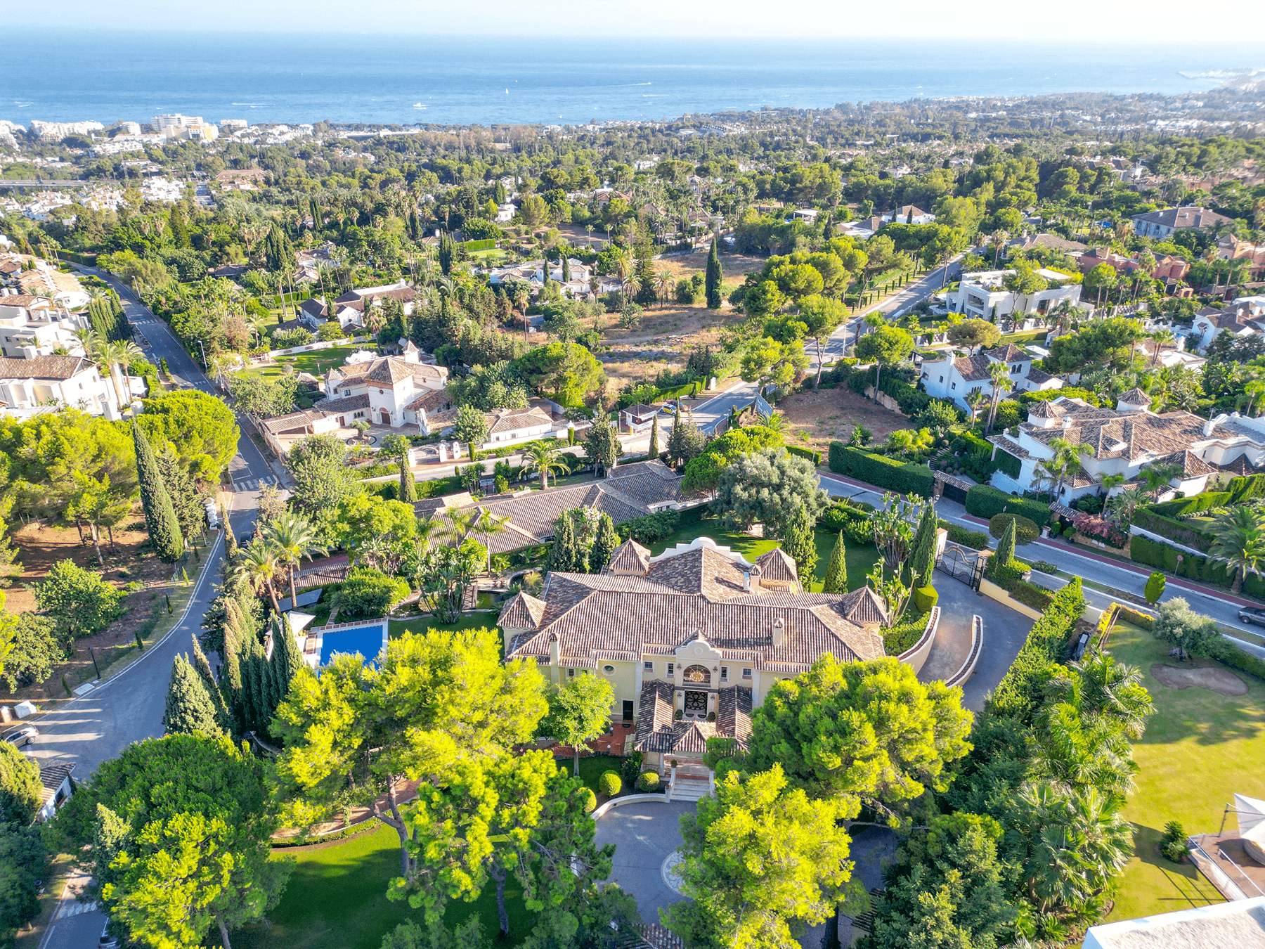 A Spanish-Mediterranean style residential villa is presented in a well-established gated community in Sierra Blanca, Marbella, where comfort, privacy, and natural surroundings are balanced harmoniously.