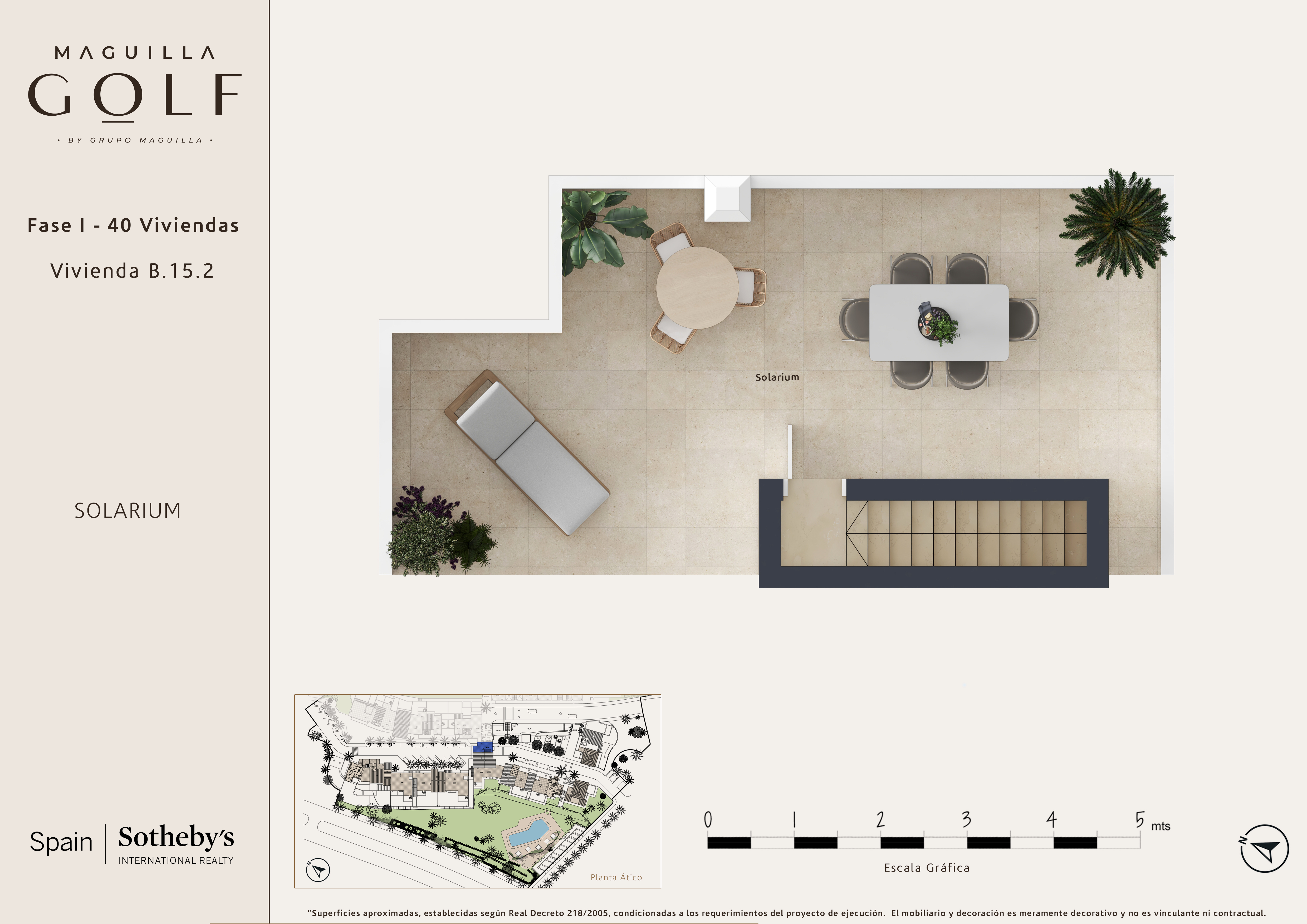 O desenvolvimento está organizado em diferentes fases. A primeira fase introduz um conjunto de 40 habitações, integradas num primeiro desenvolvimento de 90 unidades, que inclui apartamentos de 1, 2 e 3 quartos, bem como Penthouse e duplex, todos com lugar de garagem e arrecadação incluídos. As habitações foram concebidas com uma arquitetura que reinterpreta o caráter mediterrâneo numa perspetiva contemporânea, priorizando a funcionalidade, a entrada de luz natural e a relação entre espaços interiores e exteriores. Oferecem distribuições equilibradas, com especial atenção aos materiais e acabamentos, pensados para garantir conforto, durabilidade e qualidade no uso diário. As áreas comuns foram desenhadas como uma extensão da habitação, incorporando piscina comunitária, espaços ajardinados e uma área social polivalente que integra zona de eventos e reuniões, cozinha interior e exterior, espaços de leitura e televisão, assim como zonas de coworking e um terraço chillout com vistas para o campo de golfe. Esta primeira fase representa uma oportunidade de acesso a um desenvolvimento residencial com potencial, num ambiente consolidado e bem conectado.